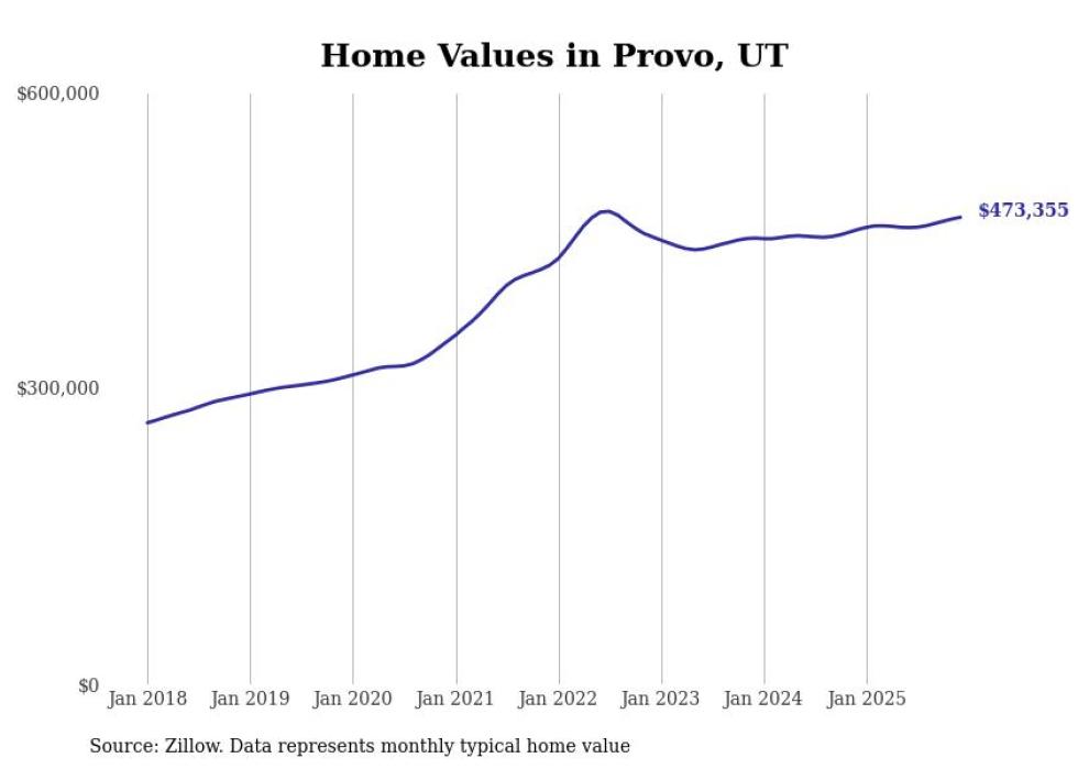 Stacker compiled a list of cities with the most expensive homes in the Provo metro area using data from Zillow. Charts show the monthly typical home value since January 2018. All 26 cities and towns with data available were included in the list.