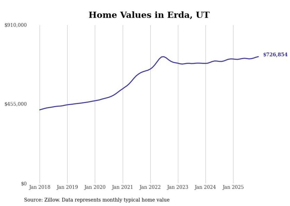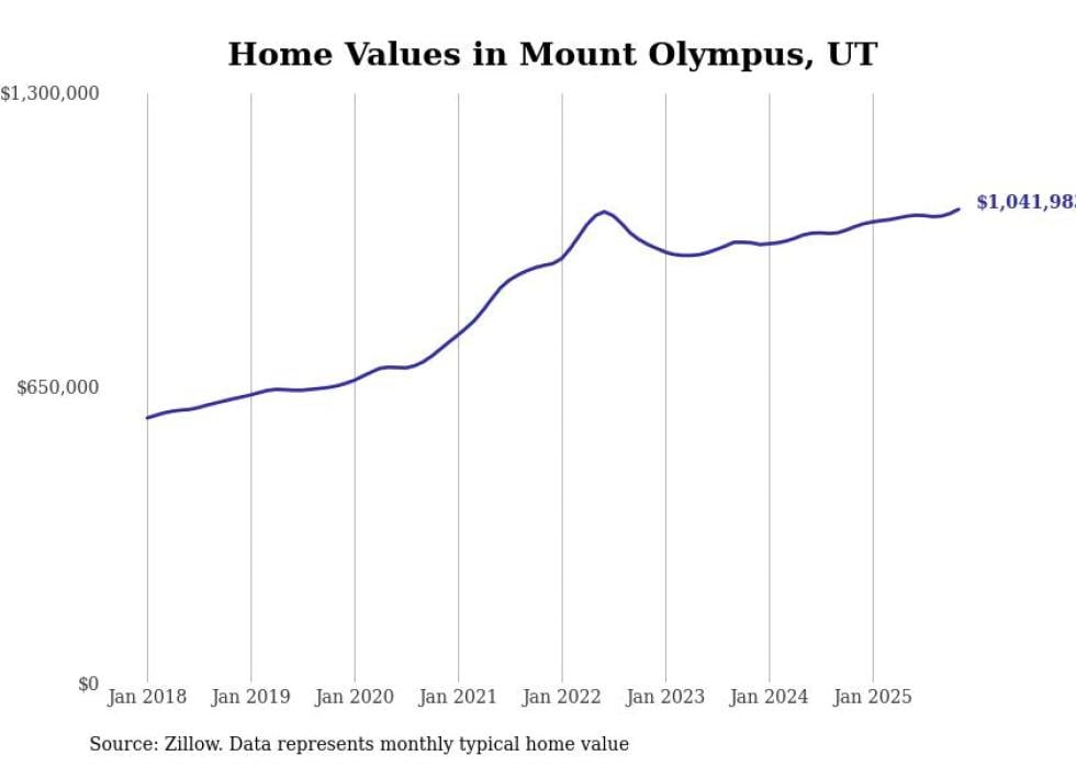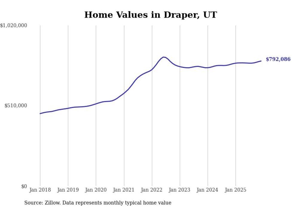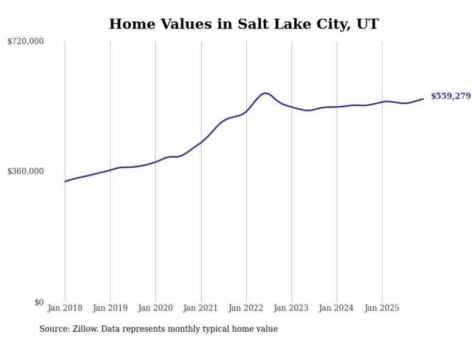 Stacker compiled a list of cities with the most expensive homes in the Salt Lake City, UT metro area using data from Zillow. Charts show the monthly typical home value since January 2018.