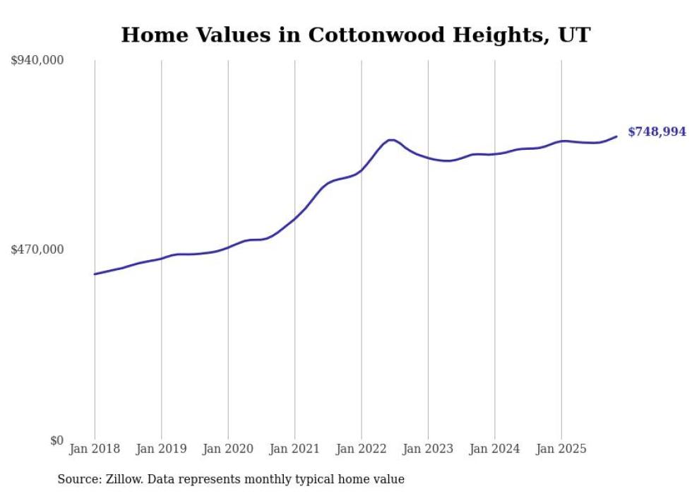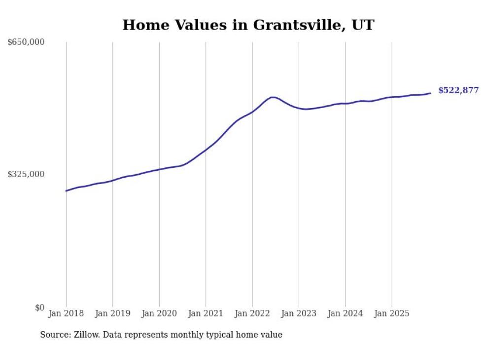 Stacker compiled a list of cities with the most expensive homes in the Salt Lake City metro area using data from Zillow. Charts show the monthly typical home value since January 2018. All 28 cities and towns with data available were included in the list.