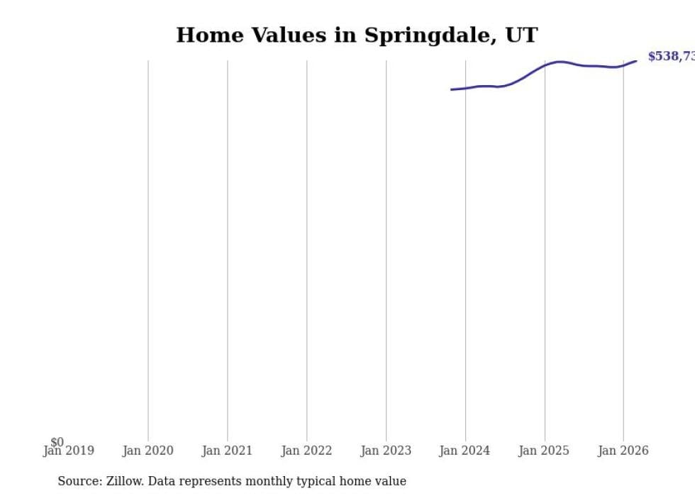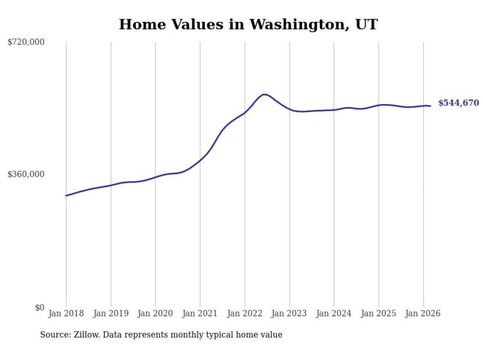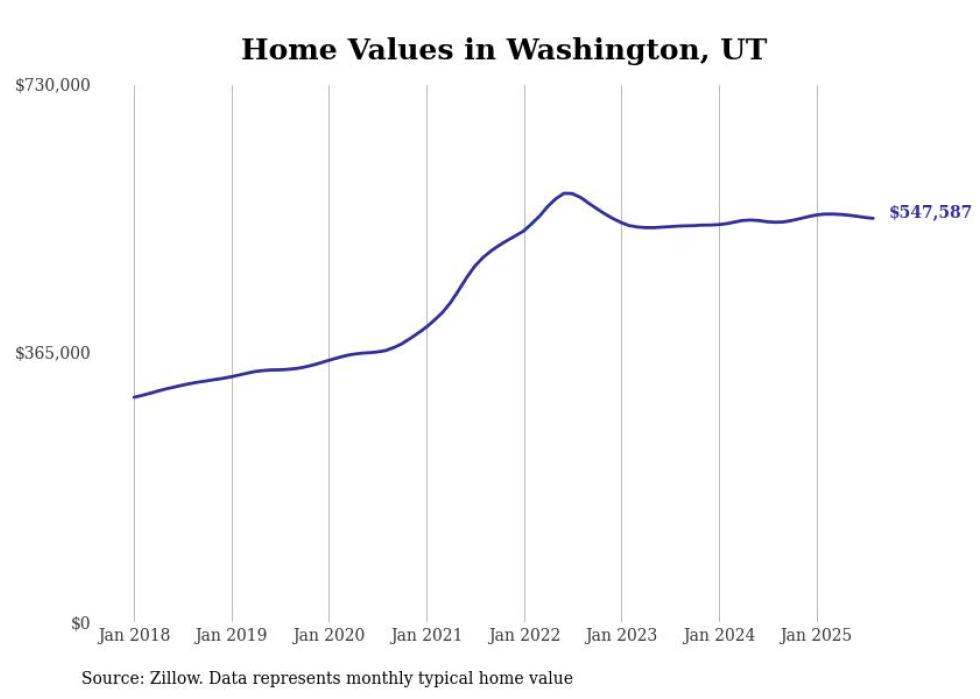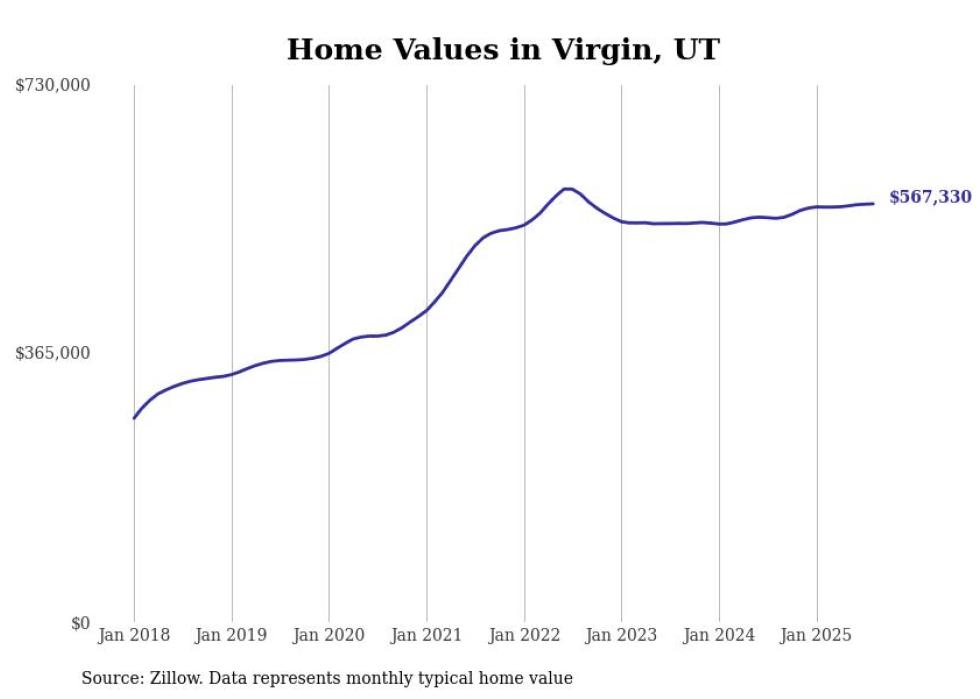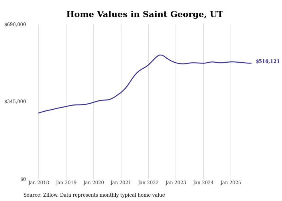 Stacker compiled a list of cities with the most expensive homes in the St. George, UT metro area using data from Zillow. Charts show the monthly typical home value since January 2018.