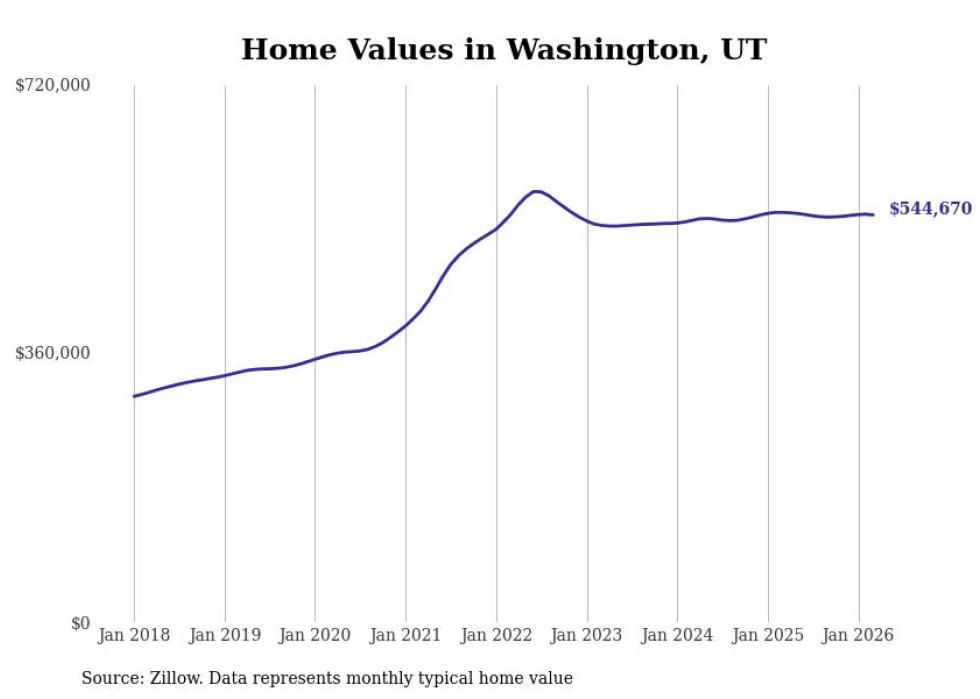 Stacker compiled a list of cities with the most expensive homes in the St. George metro area using data from Zillow. Charts show the monthly typical home value since January 2018. All 16 cities and towns with data available were included in the list.