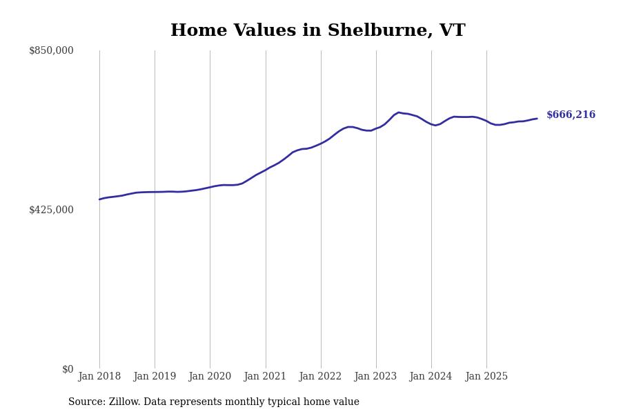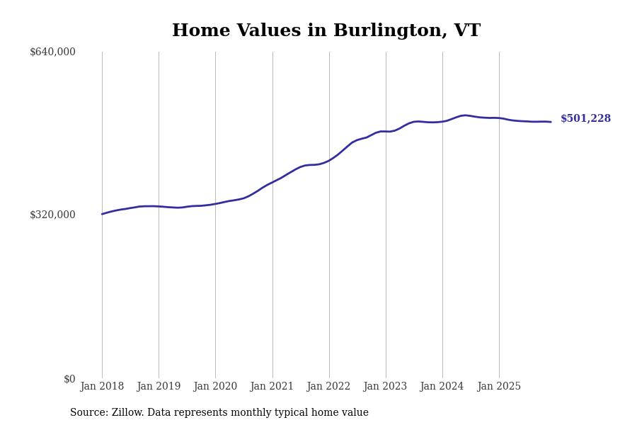 Stacker compiled a list of cities with the most expensive homes in the Burlington metro area using data from Zillow. Charts show the monthly typical home value since January 2018. Data was available for 36 cities and towns.