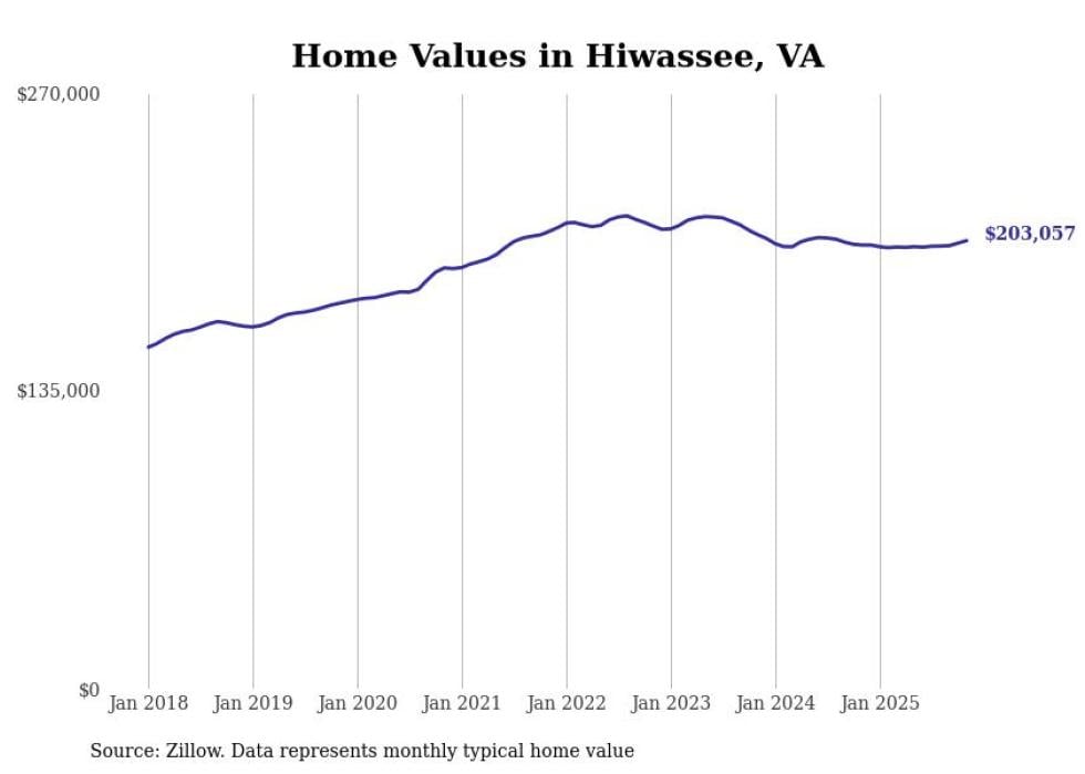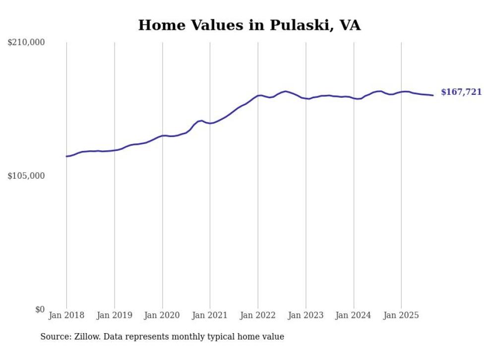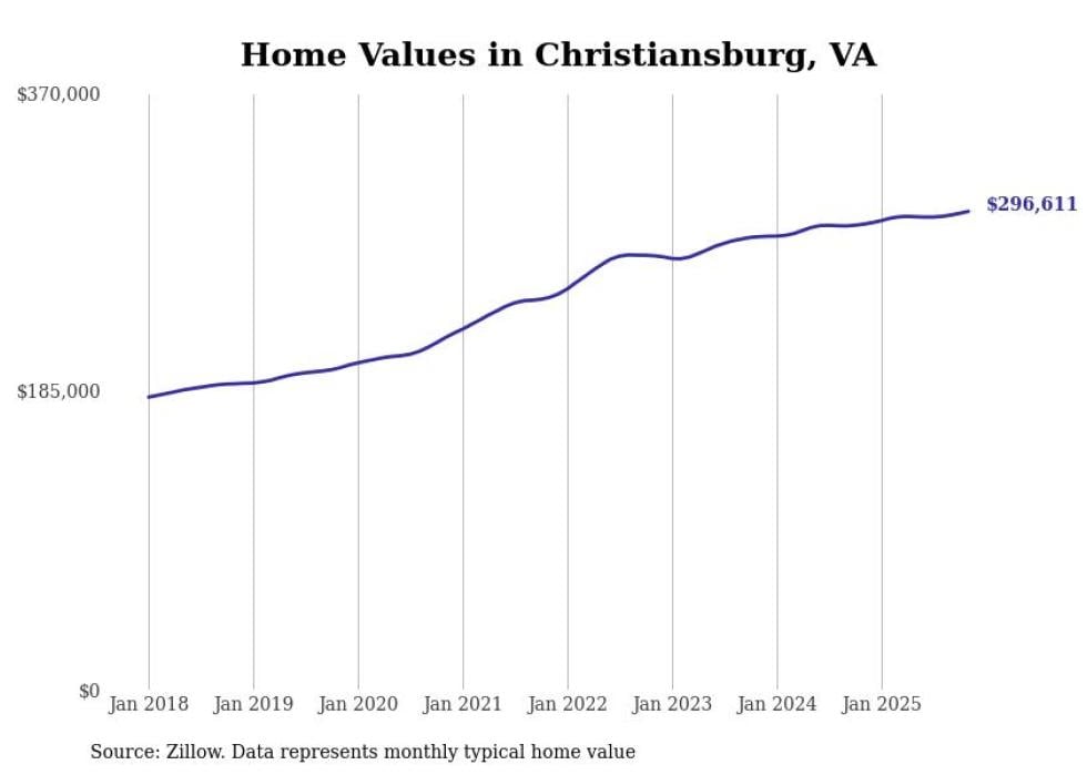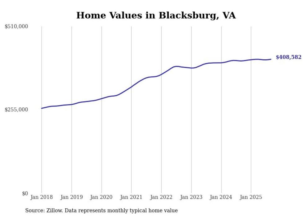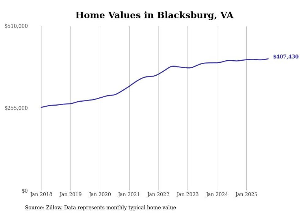 Stacker compiled a list of cities with the most expensive homes in the Blacksburg-Christiansburg, VA metro area using data from Zillow. Charts show the monthly typical home value since January 2018.