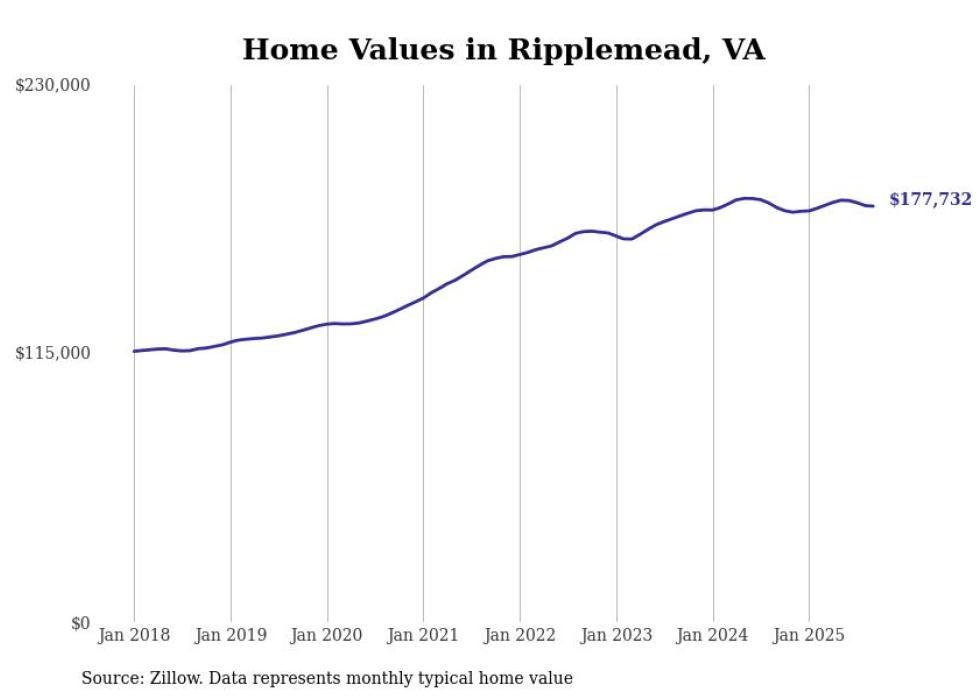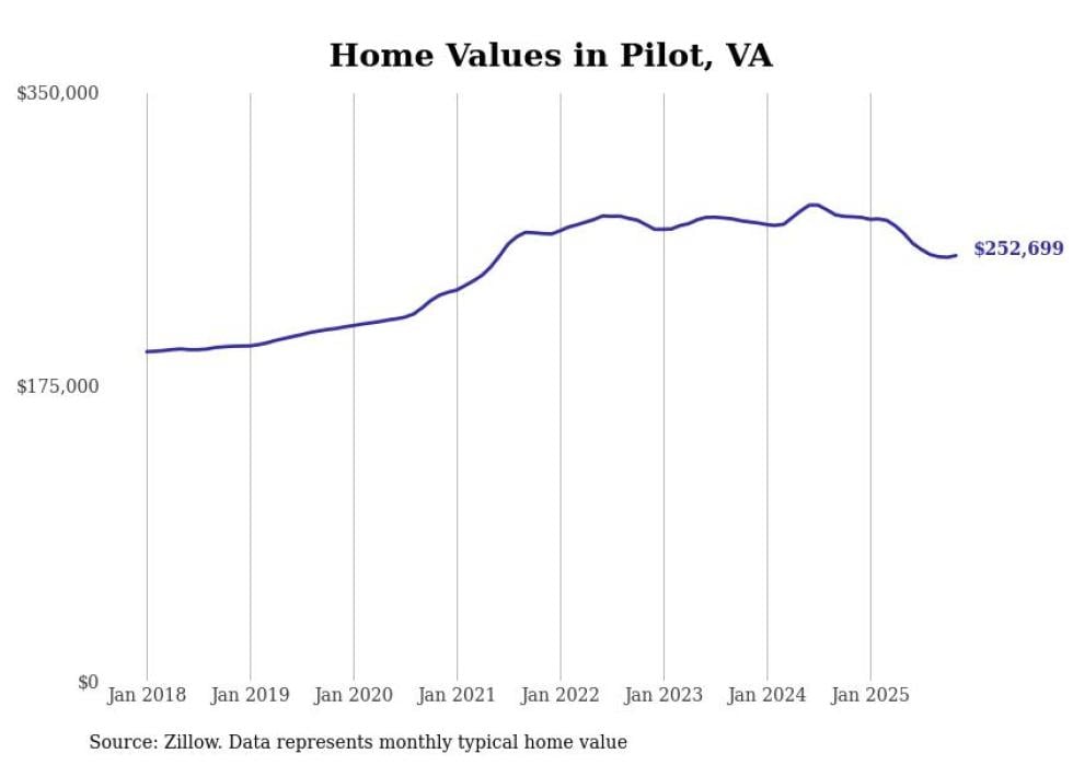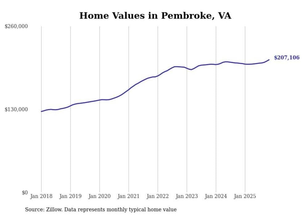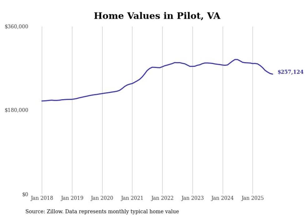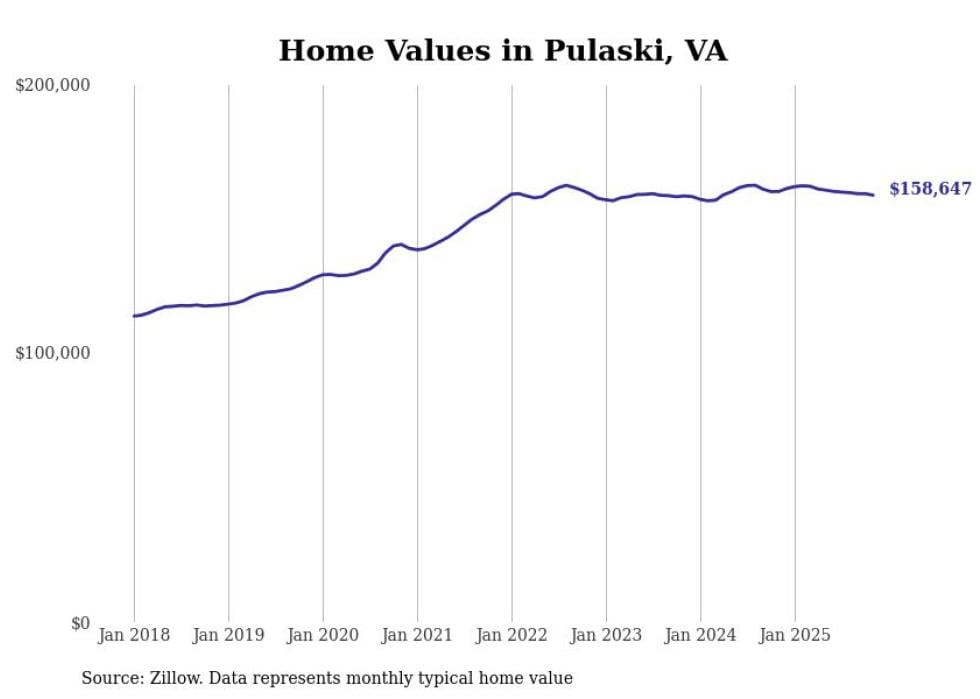 Stacker compiled a list of cities with the most expensive homes in the Blacksburg-Christiansburg, VA metro area using data from Zillow. Charts show the monthly typical home value since January 2018.