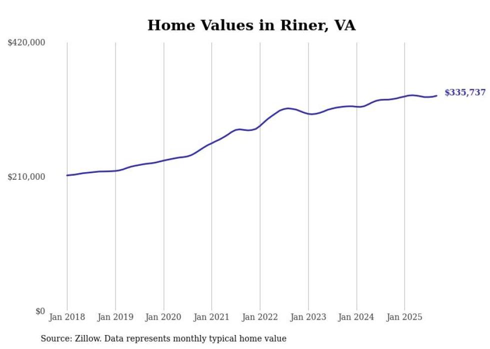 Cities with the fastest-growing home prices in the Blacksburg metro area