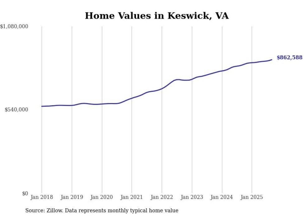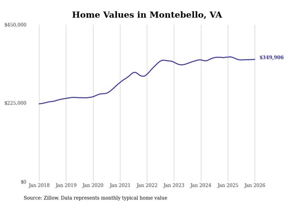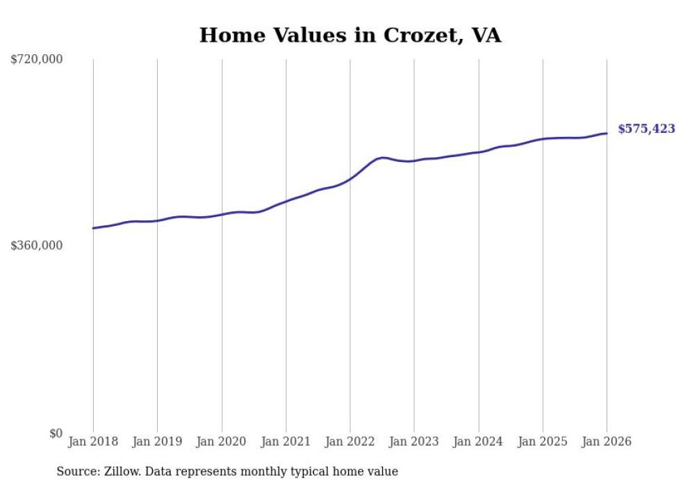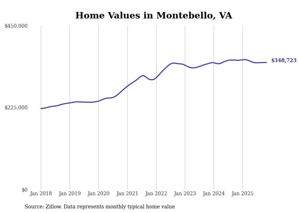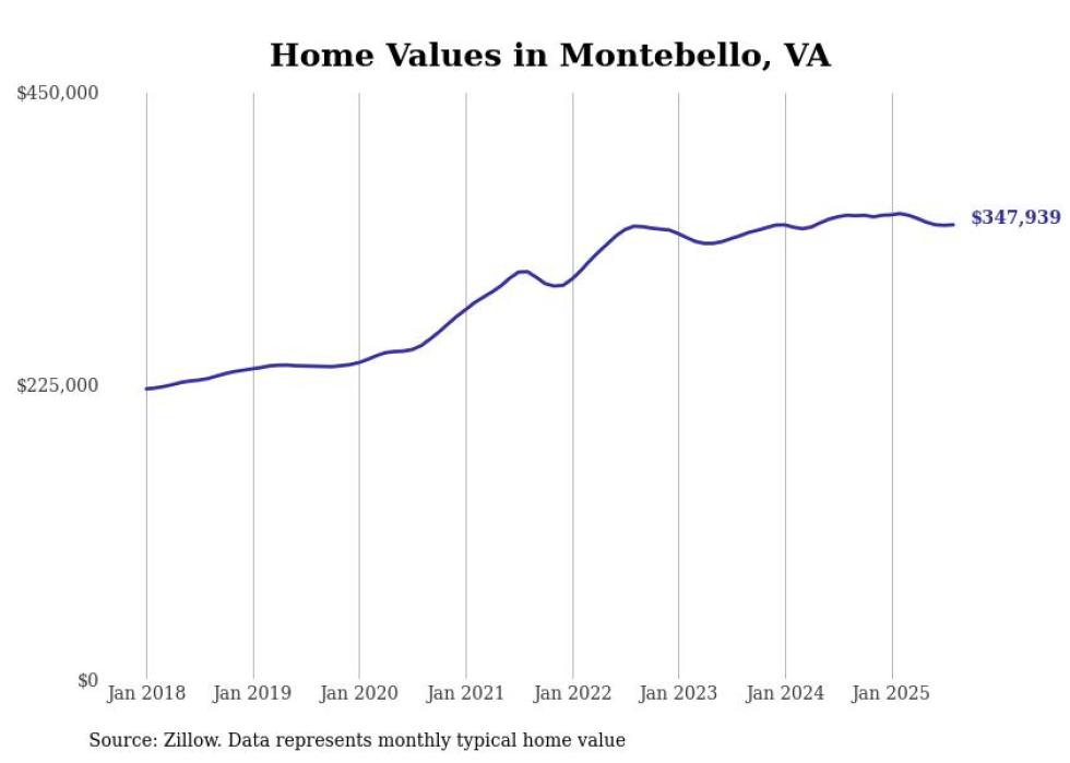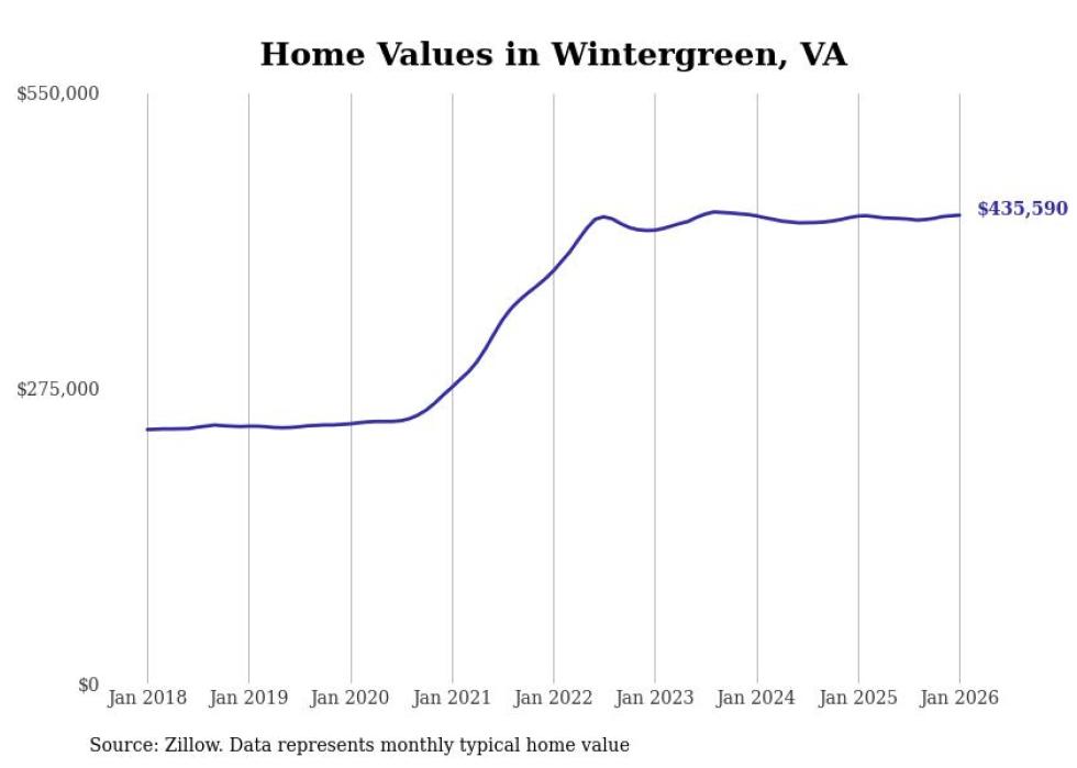 Stacker compiled a list of cities with the most expensive homes in the Charlottesville metro area using data from Zillow. Charts show the monthly typical home value since January 2018. Data was available for 33 cities and towns.