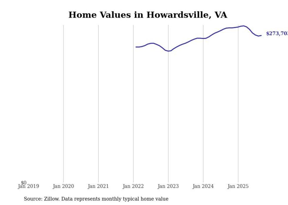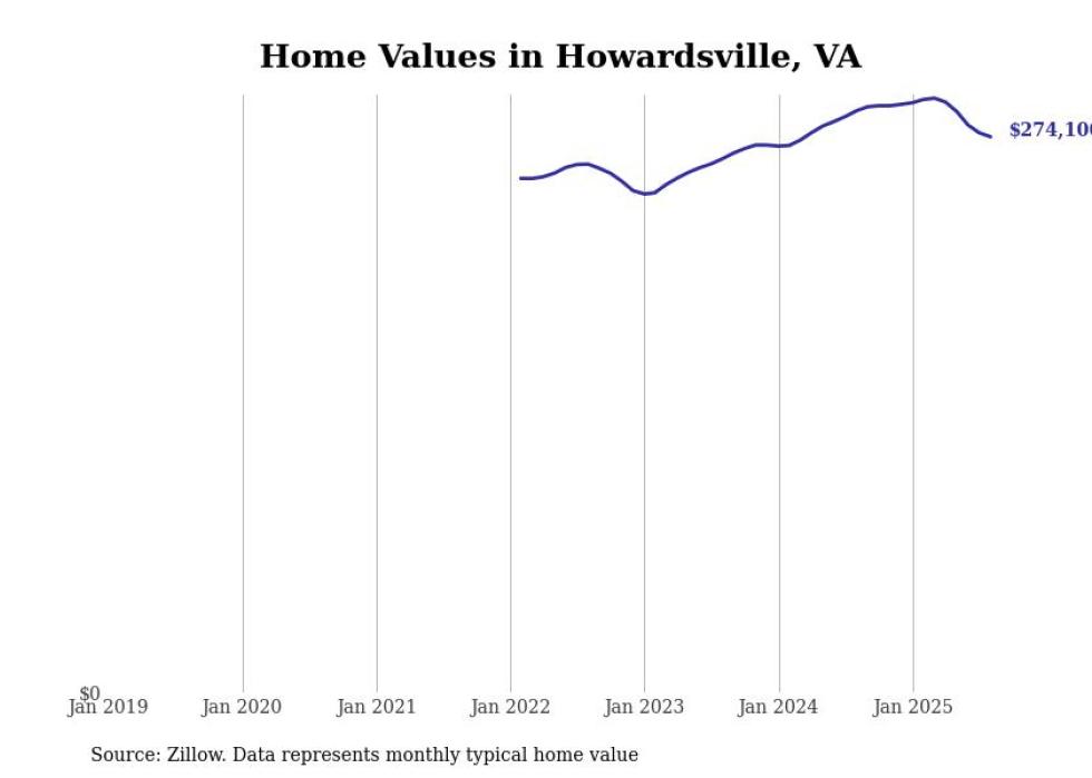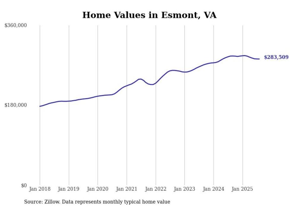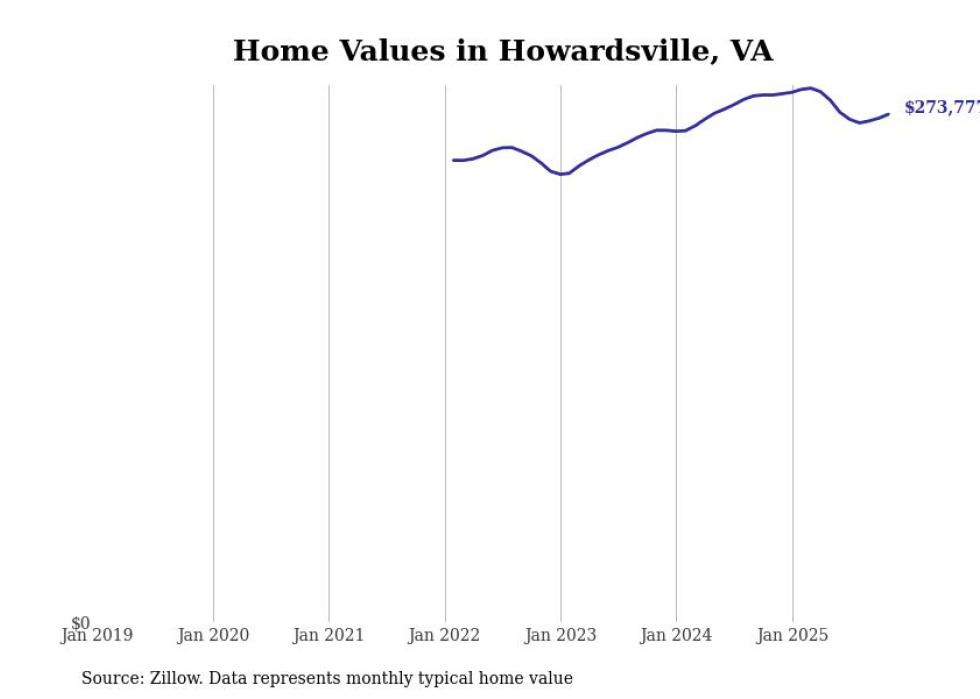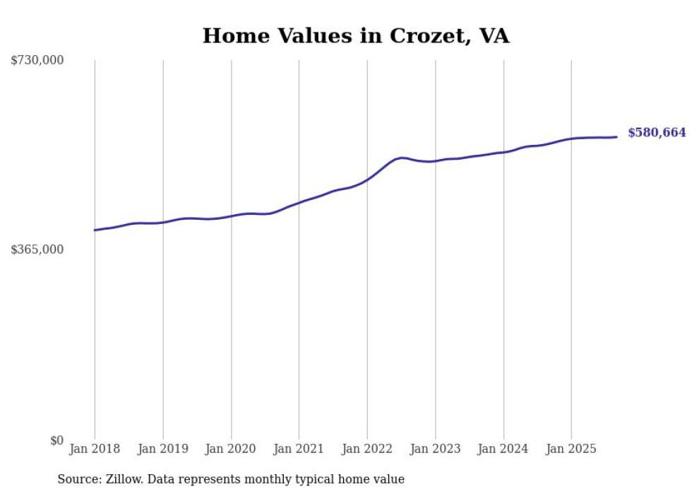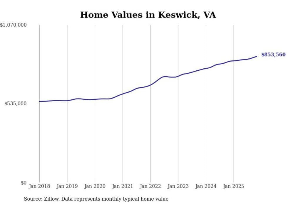 Stacker compiled a list of cities with the most expensive homes in the Charlottesville metro area using data from Zillow. Charts show the monthly typical home value since January 2018. Data was available for 33 cities and towns.