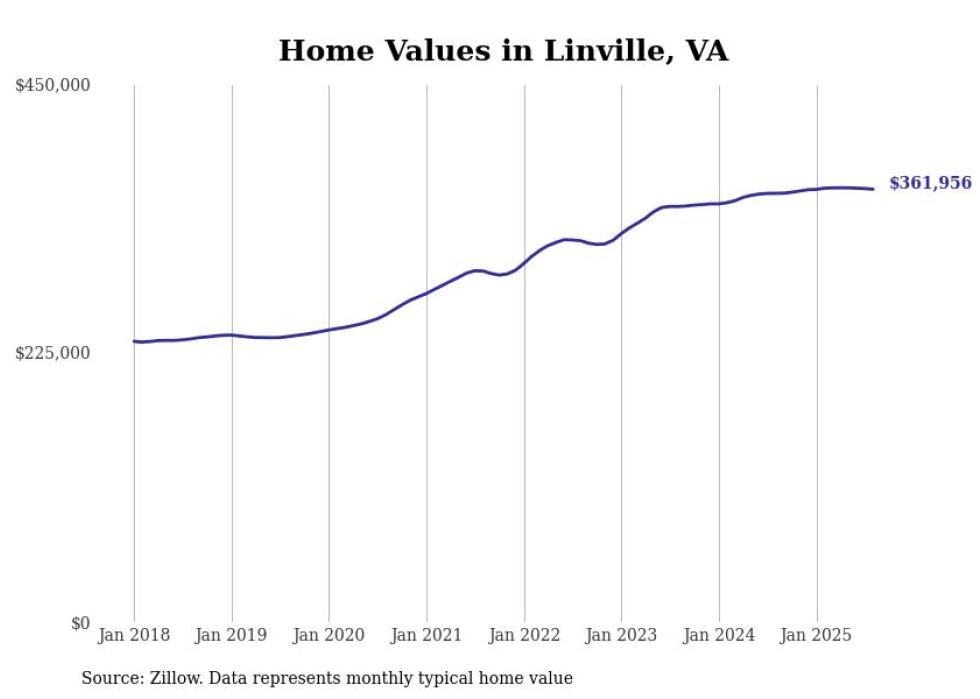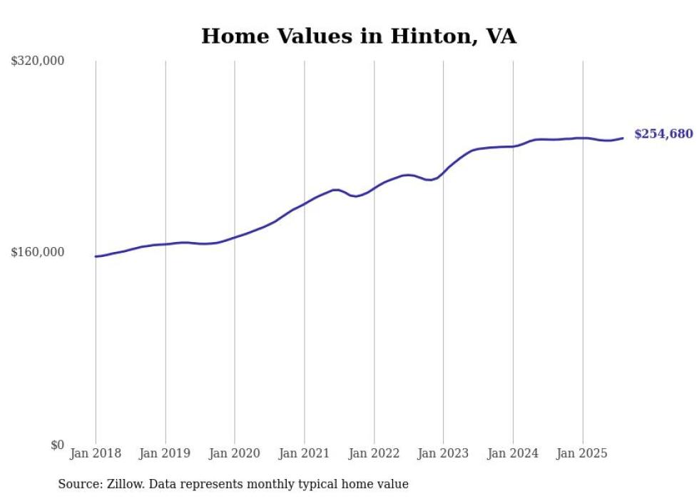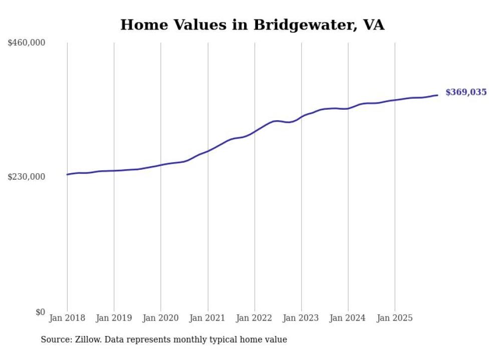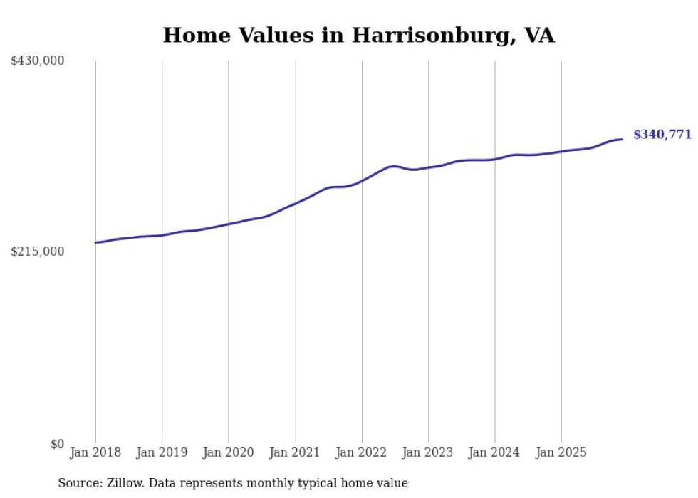 Stacker compiled a list of cities with the most expensive homes in the Harrisonburg metro area using data from Zillow. Charts show the monthly typical home value since January 2018. All 13 cities and towns with data available were included in the list.
