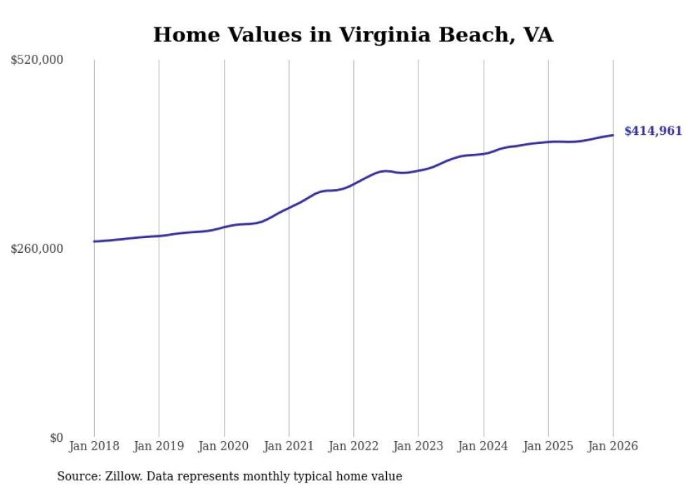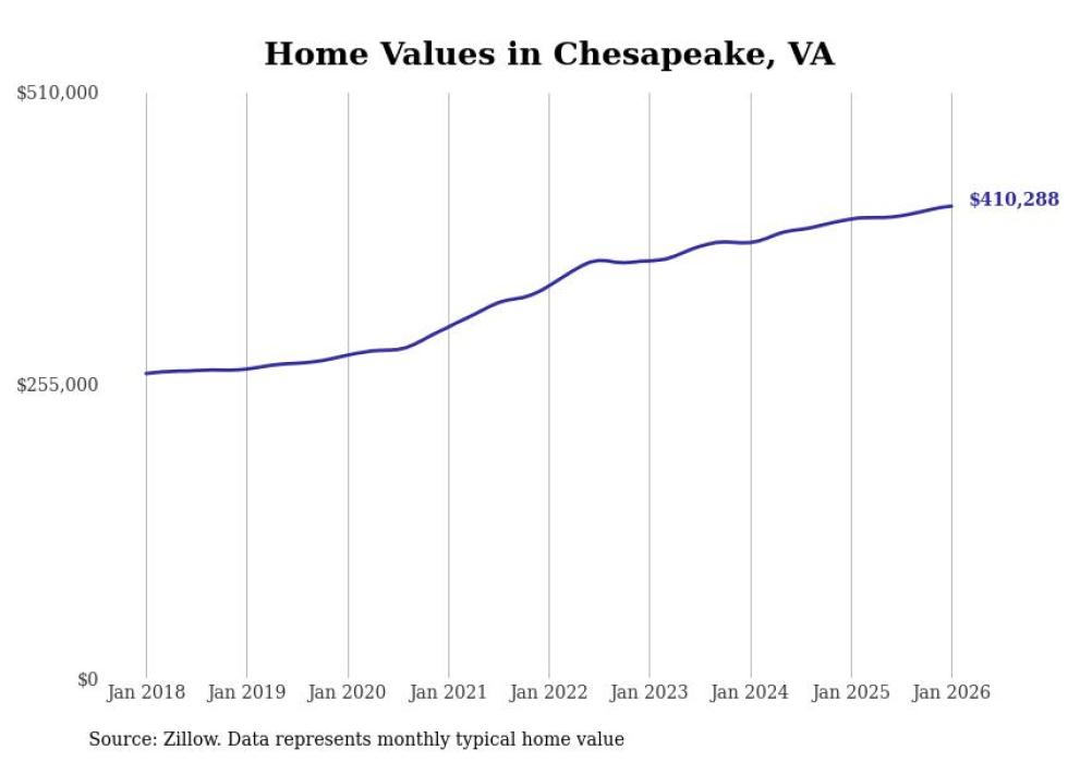 Cities with the fastest-growing home prices in the Norfolk metro area
