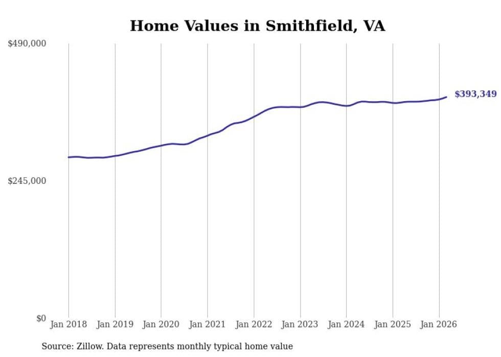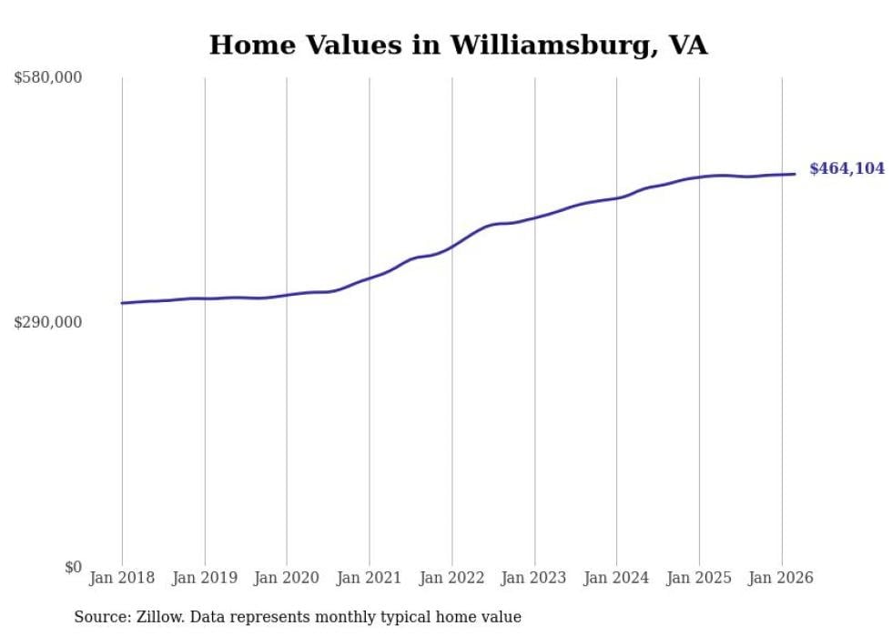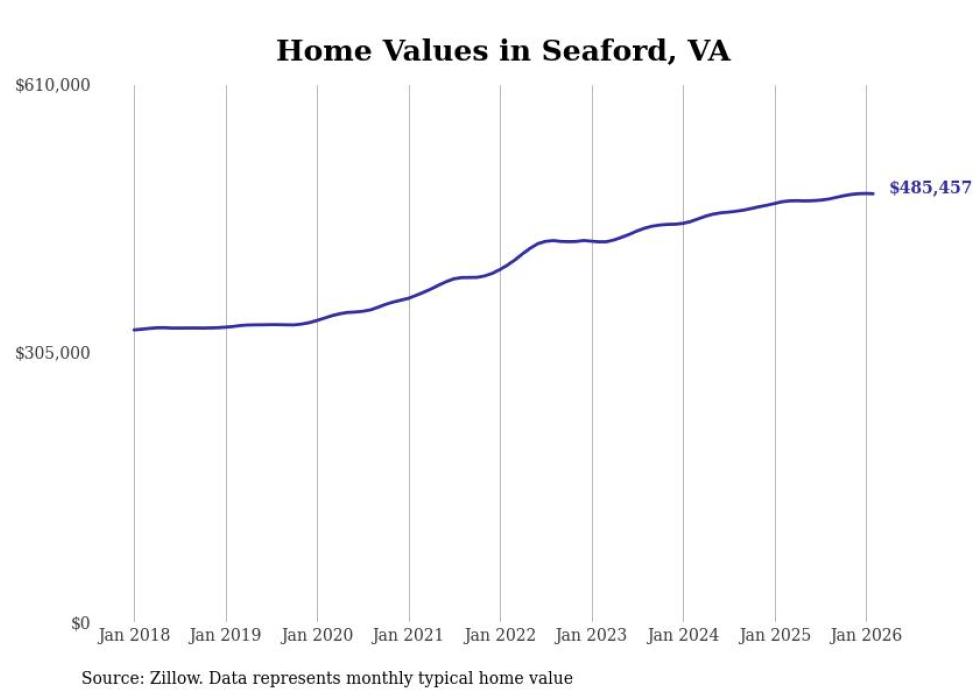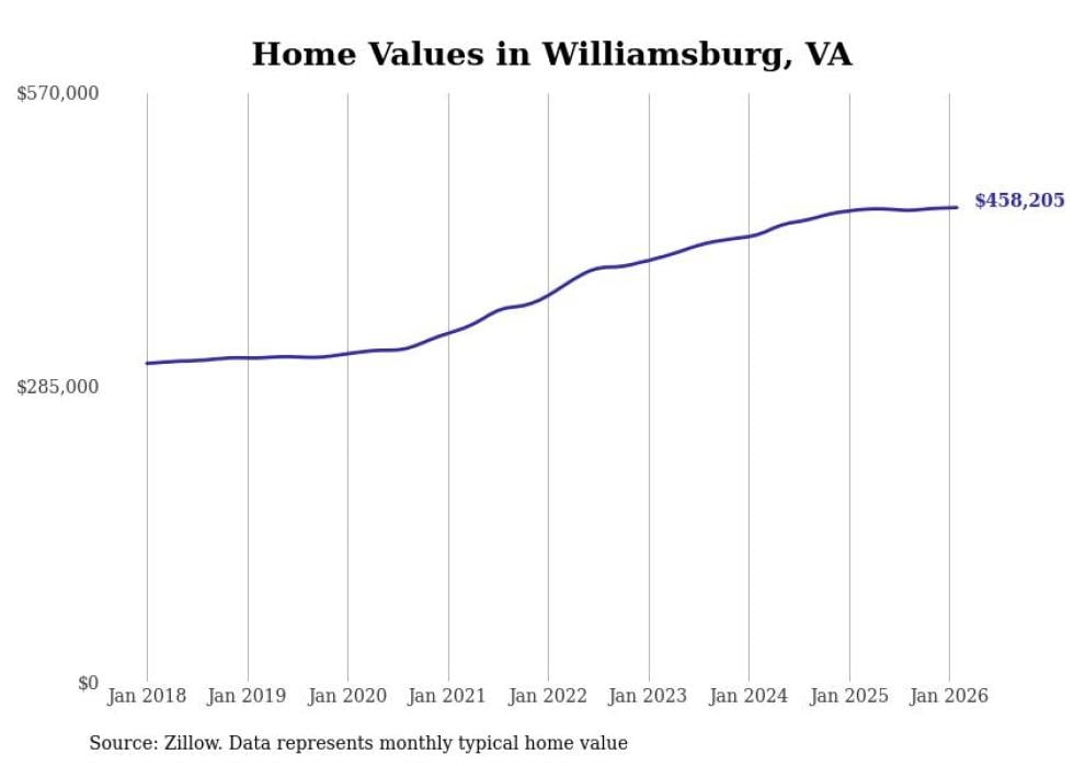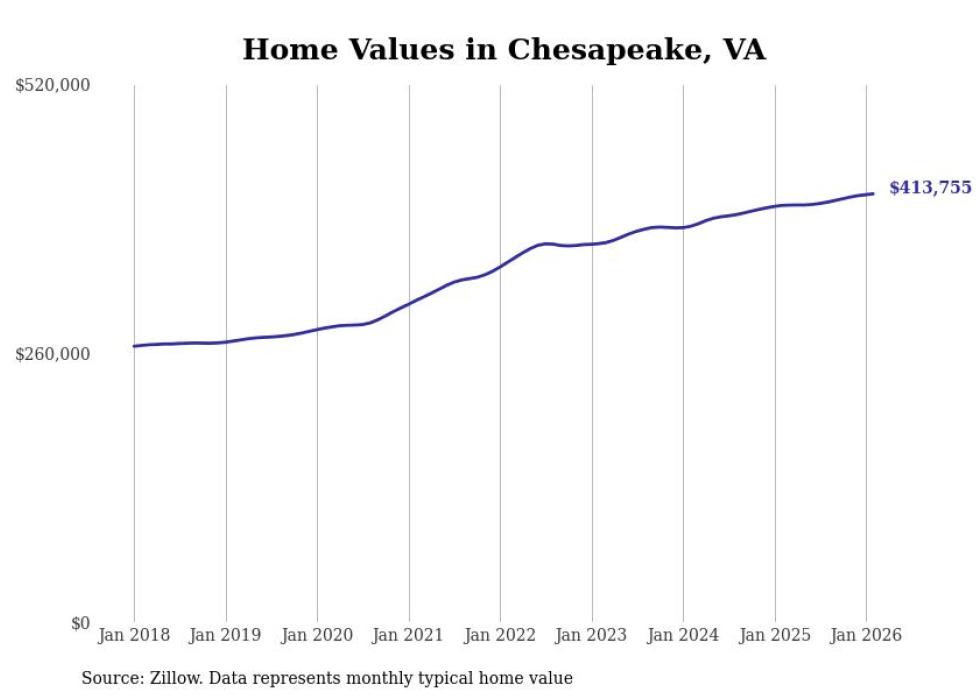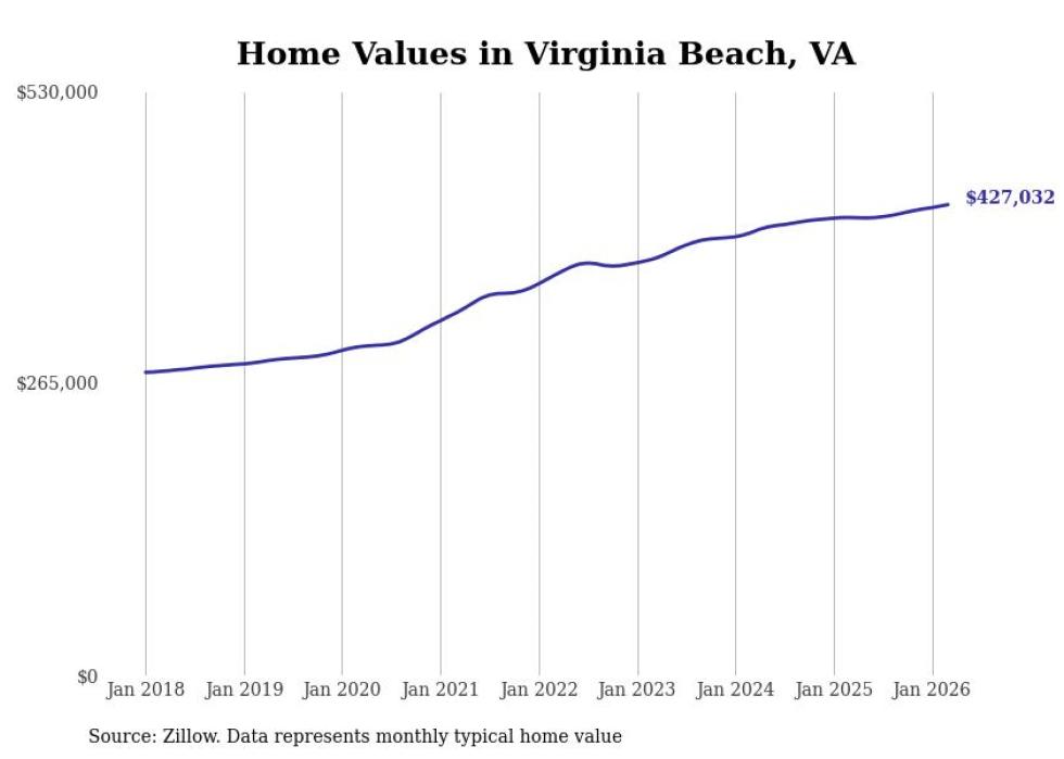 Stacker compiled a list of cities with the most expensive homes in the Norfolk metro area using data from Zillow. Charts show the monthly typical home value since January 2018. Data was available for 60 cities and towns.