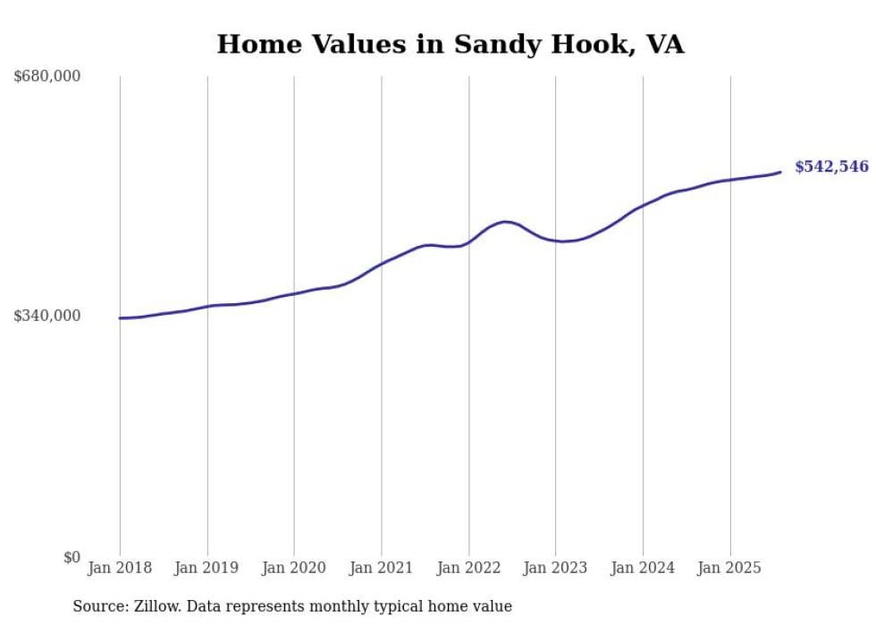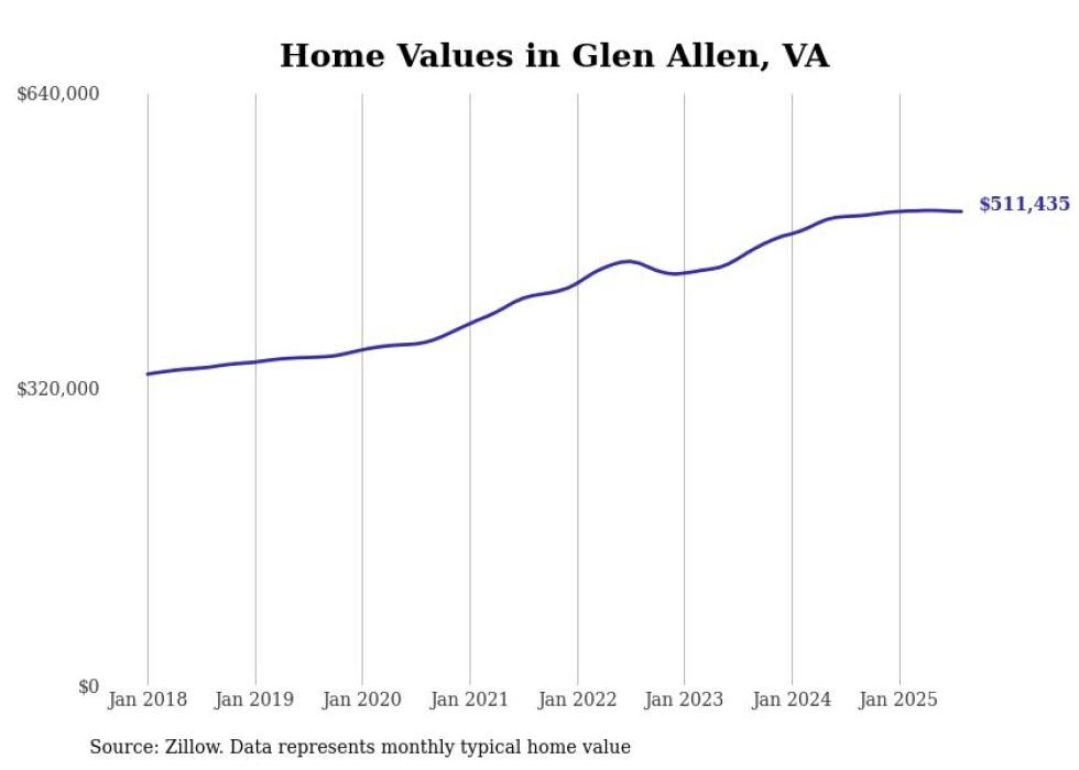 Stacker compiled a list of cities with the most expensive homes in the Richmond, VA metro area using data from Zillow. Charts show the monthly typical home value since January 2018.