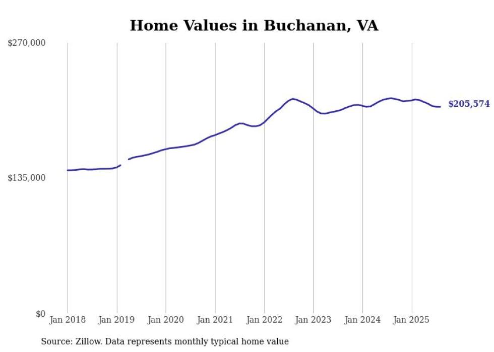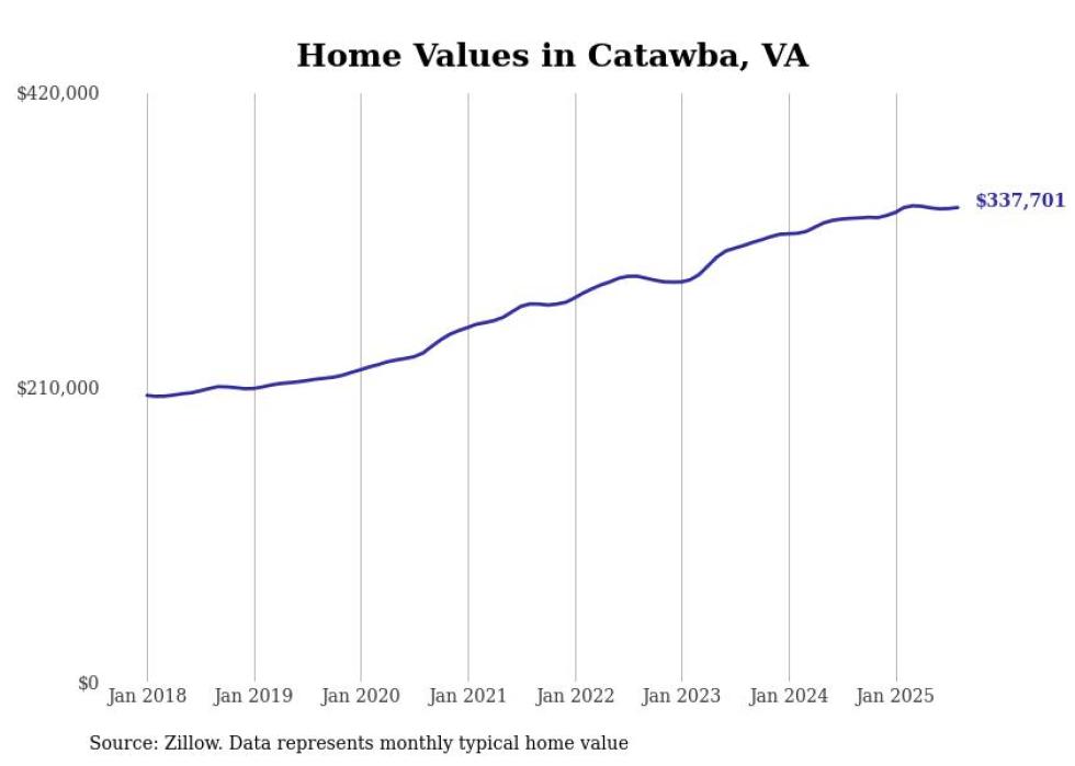 Stacker compiled a list of cities with the most expensive homes in the Roanoke, VA metro area using data from Zillow. Charts show the monthly typical home value since January 2018.