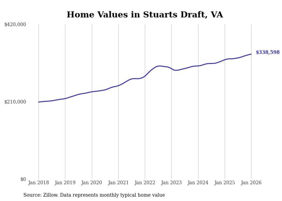 Stacker compiled a list of cities with the most expensive homes in the Staunton, VA metro area using data from Zillow. Charts show the monthly typical home value since January 2018.