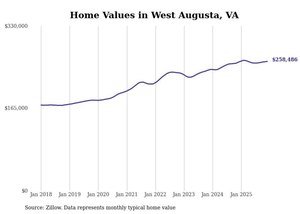 Stacker compiled a list of cities with the most expensive homes in the Staunton metro area using data from Zillow. Charts show the monthly typical home value since January 2018. All 21 cities and towns with data available were included in the list.