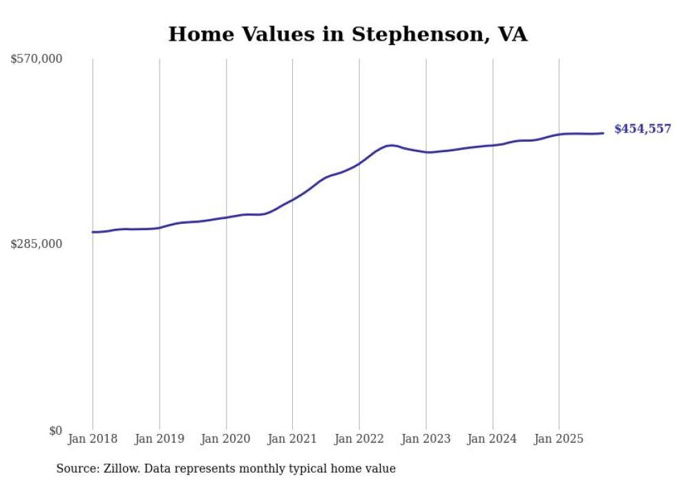 Stacker compiled a list of cities with the most expensive homes in the Winchester, VA-WV metro area using data from Zillow. Charts show the monthly typical home value since January 2018.