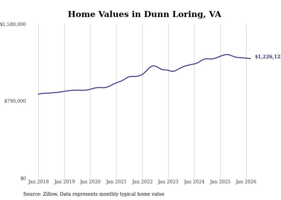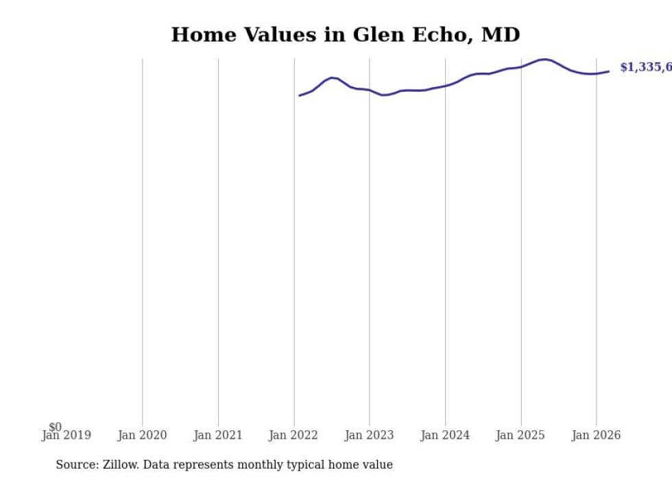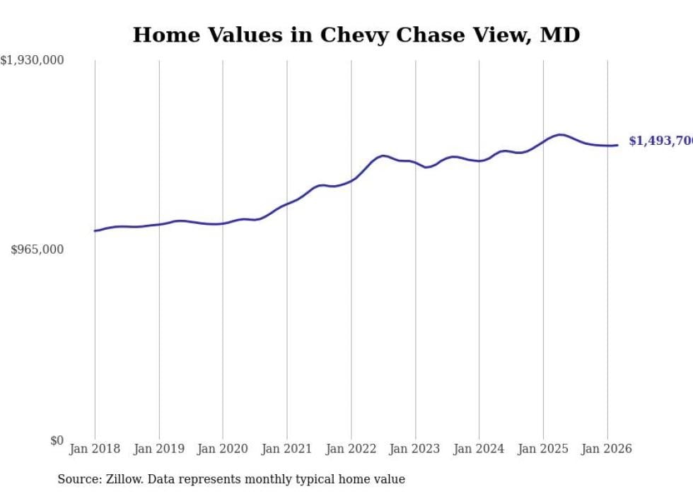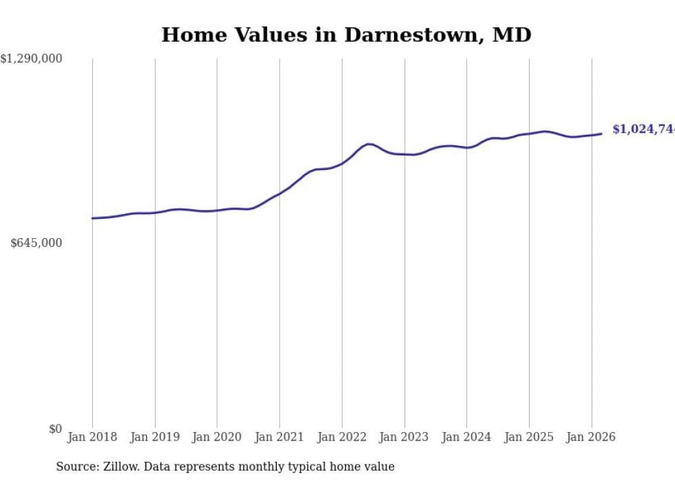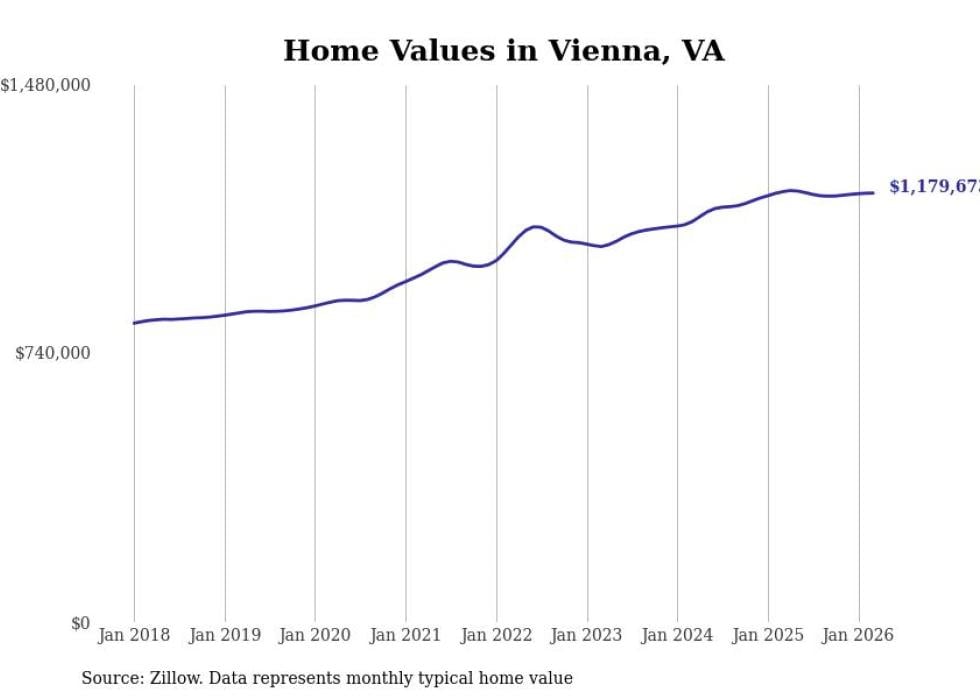 Stacker compiled a list of cities with the most expensive homes in the Washington, D.C. metro area using data from Zillow. Charts show the monthly typical home value since January 2018. Data was available for 232 cities and towns.
