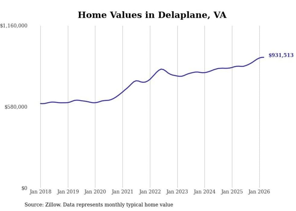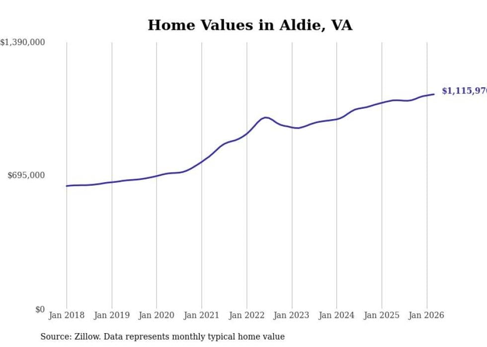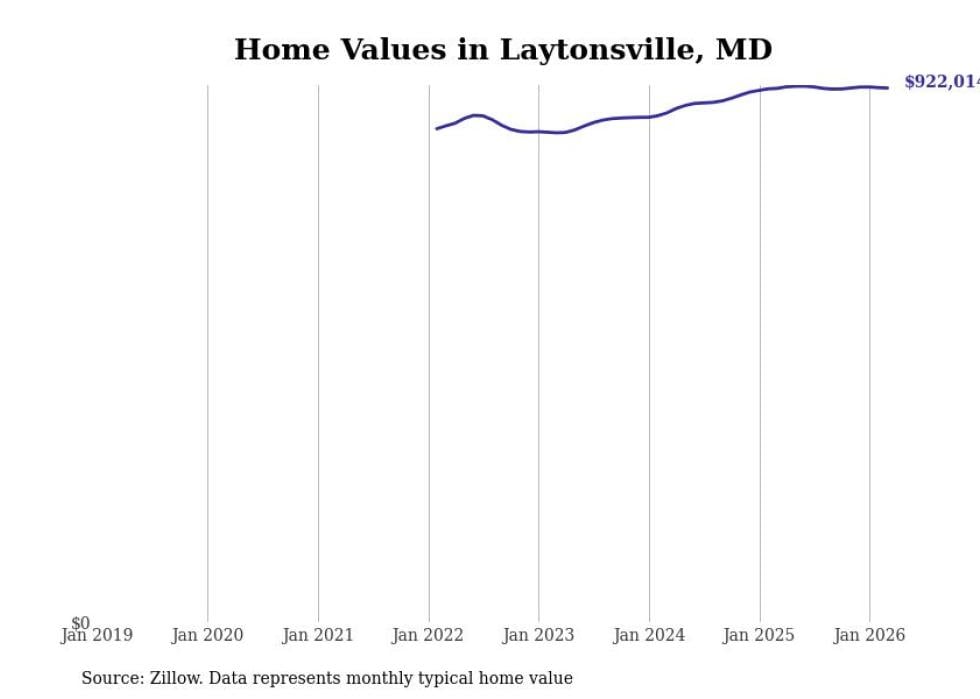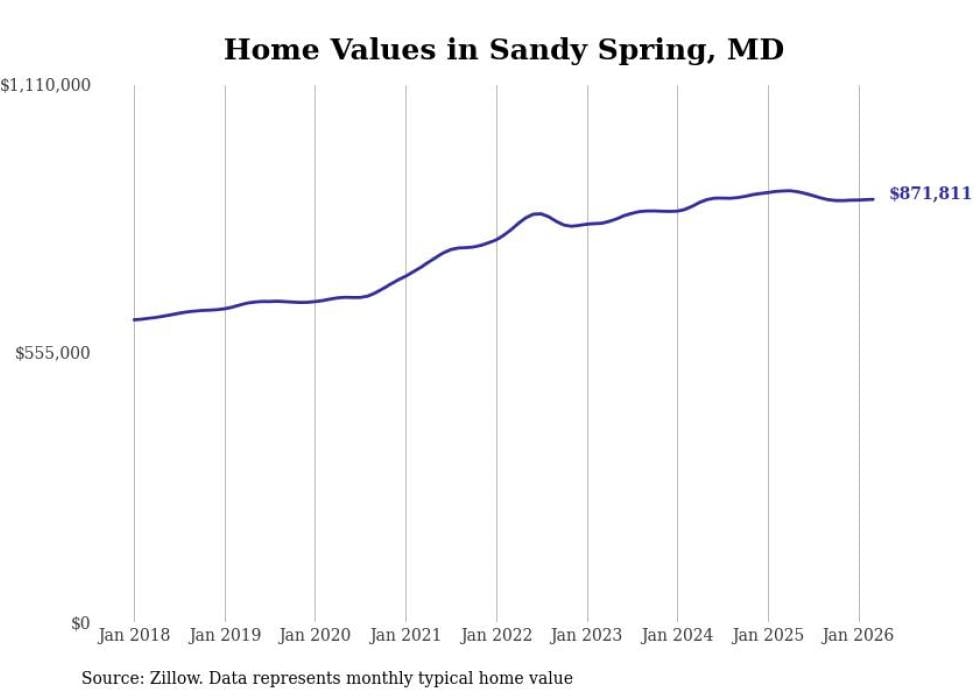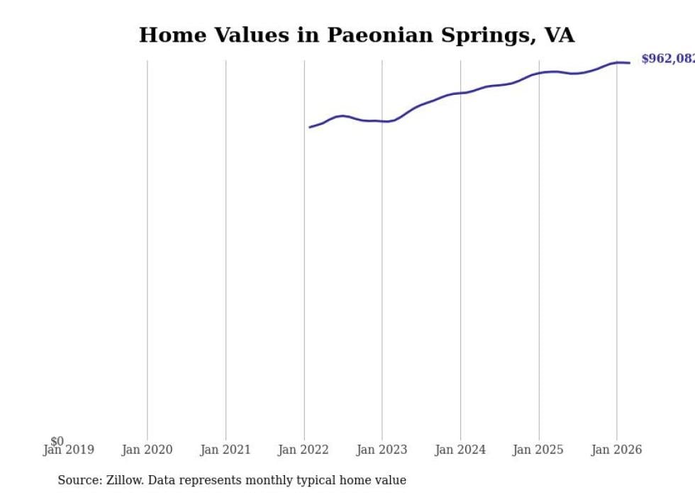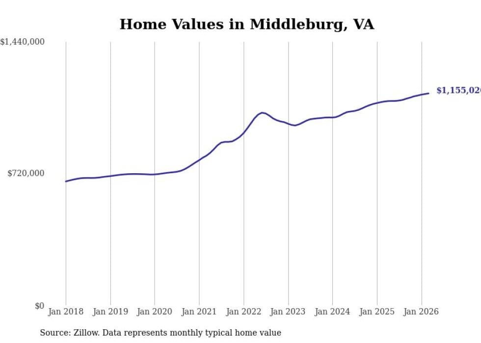 Stacker compiled a list of cities with the most expensive homes in the Washington, D.C. metro area using data from Zillow. Charts show the monthly typical home value since January 2018. Data was available for 232 cities and towns.