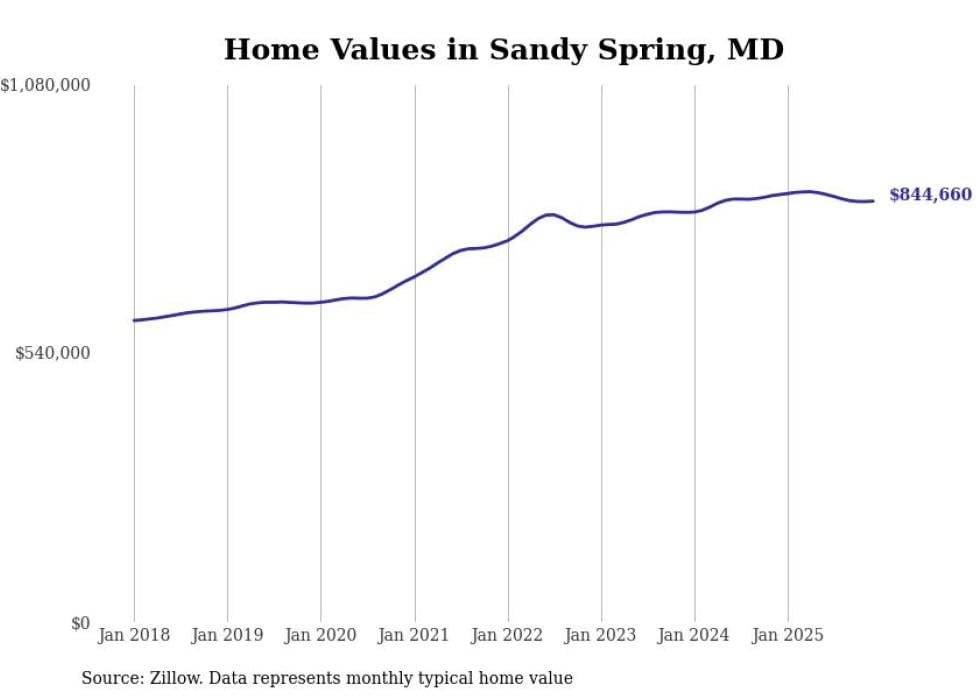 Stacker compiled a list of cities with the most expensive homes in the Washington, D.C. metro area using data from Zillow. Charts show the monthly typical home value since January 2018. Data was available for 231 cities and towns.
