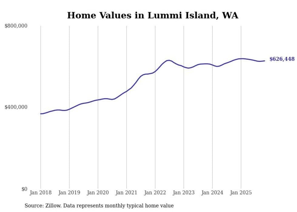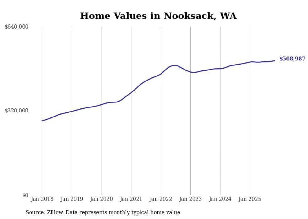 Stacker compiled a list of cities with the most expensive homes in the Bellingham, WA metro area using data from Zillow. Charts show the monthly typical home value since January 2018.