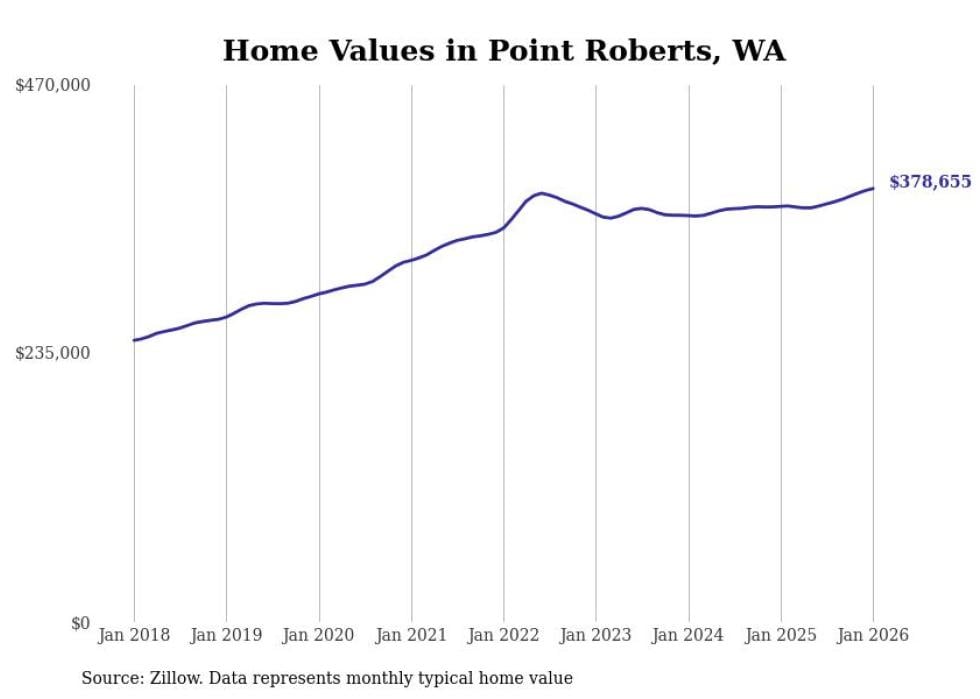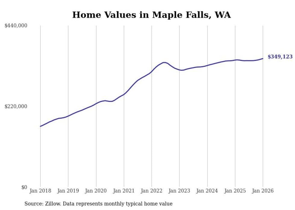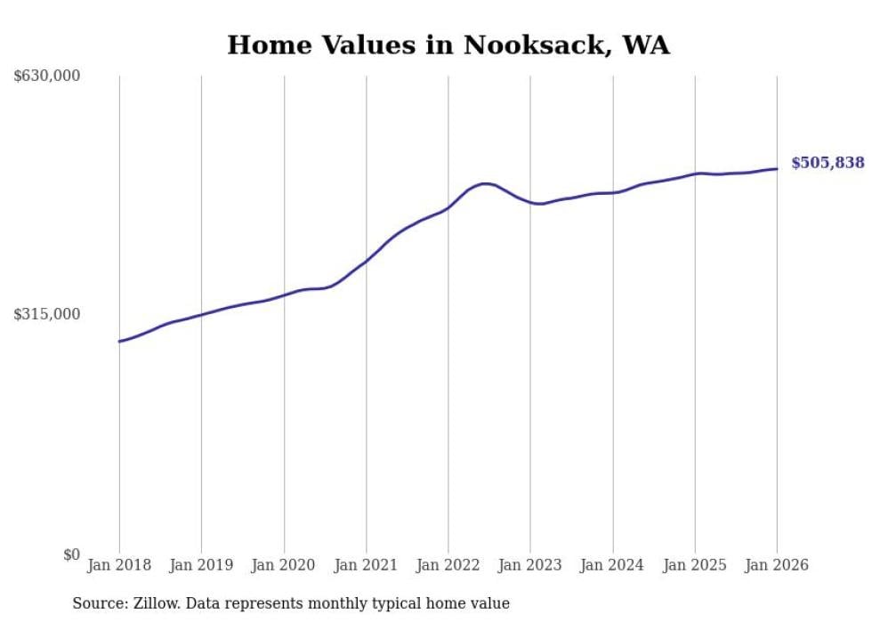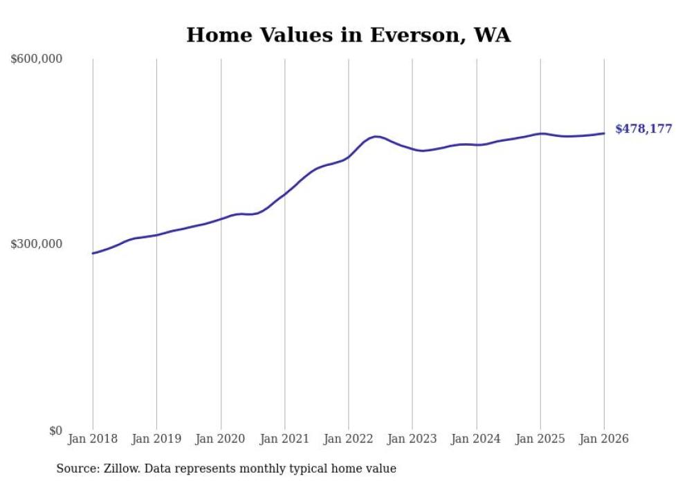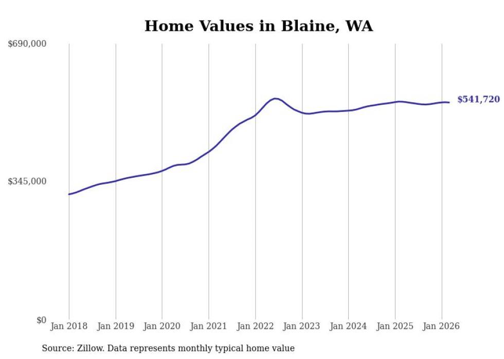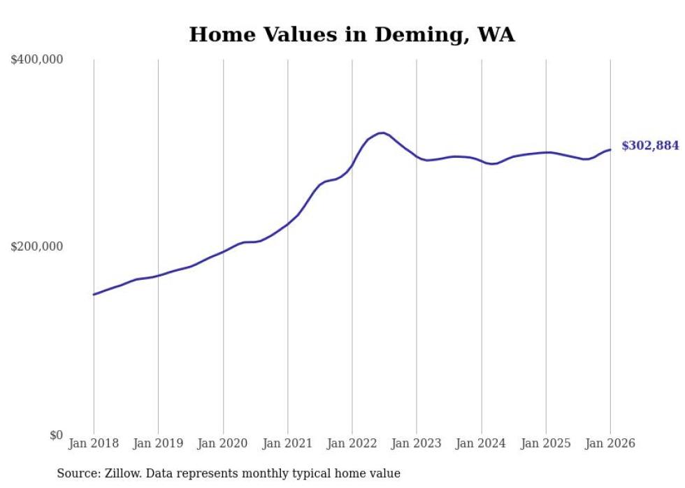 Stacker compiled a list of cities with the most expensive homes in the Bellingham metro area using data from Zillow. Charts show the monthly typical home value since January 2018. All 14 cities and towns with data available were included in the list.