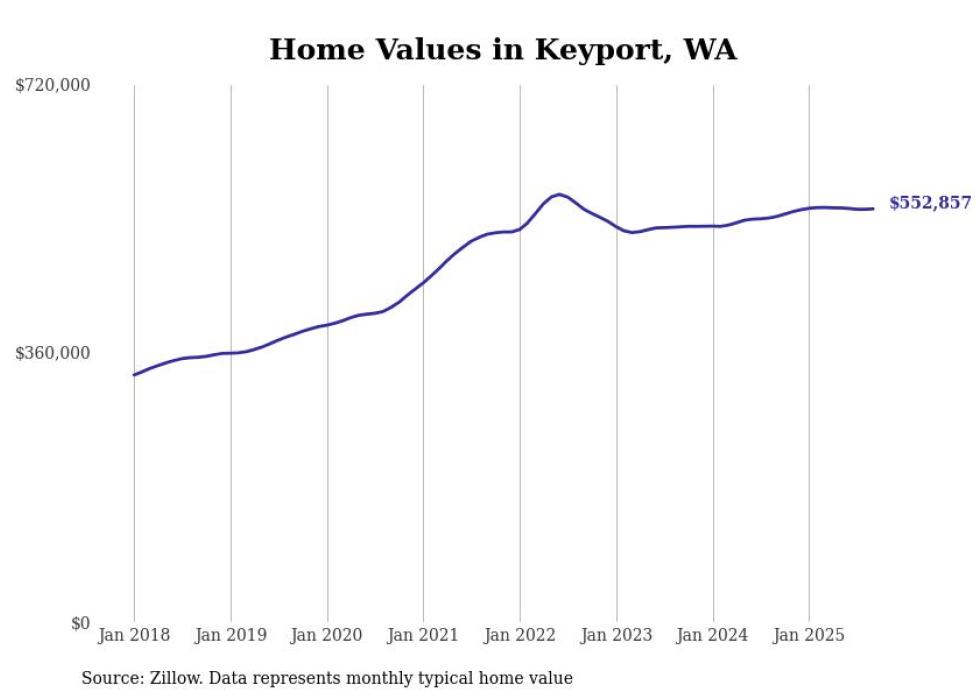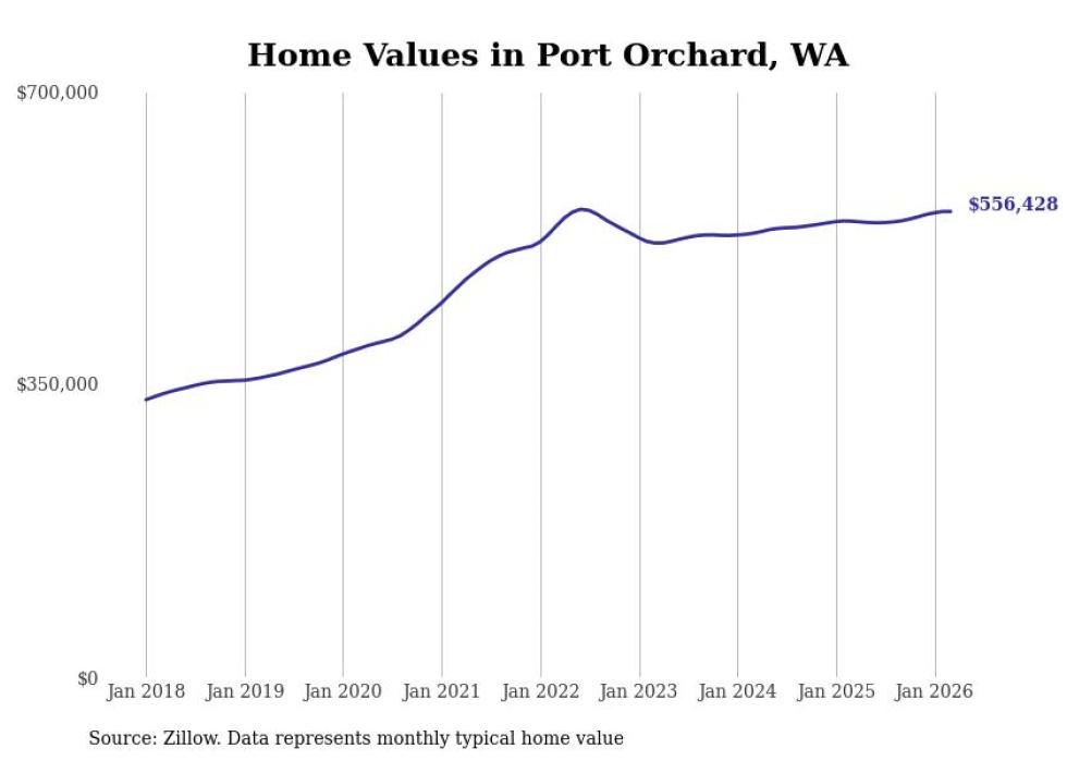 Stacker compiled a list of cities with the most expensive homes in the Bremerton-Silverdale-Port Orchard, WA metro area using data from Zillow. Charts show the monthly typical home value since January 2018.