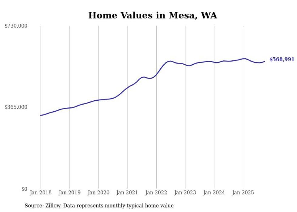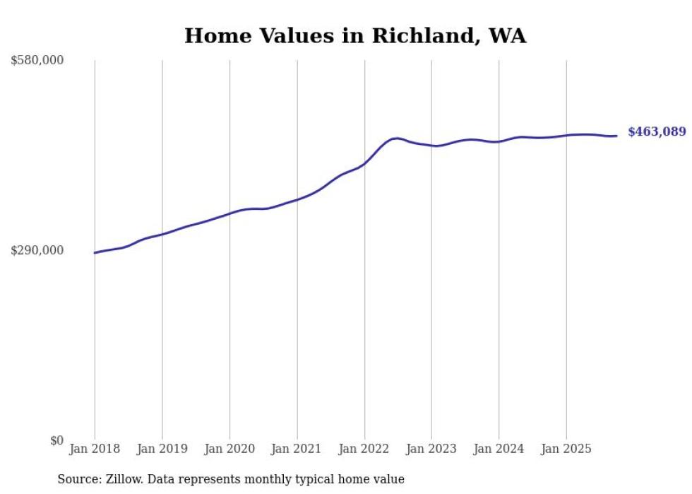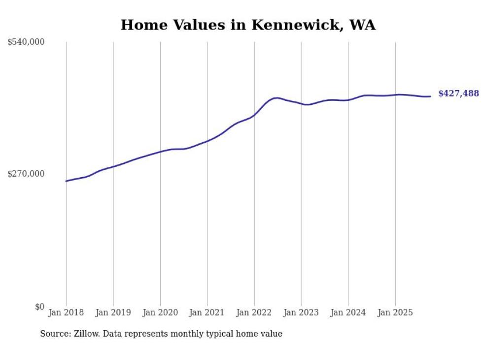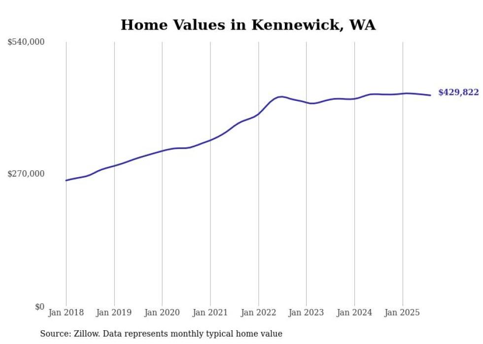 Stacker compiled a list of cities with the most expensive homes in the Kennewick-Richland, WA metro area using data from Zillow. Charts show the monthly typical home value since January 2018.