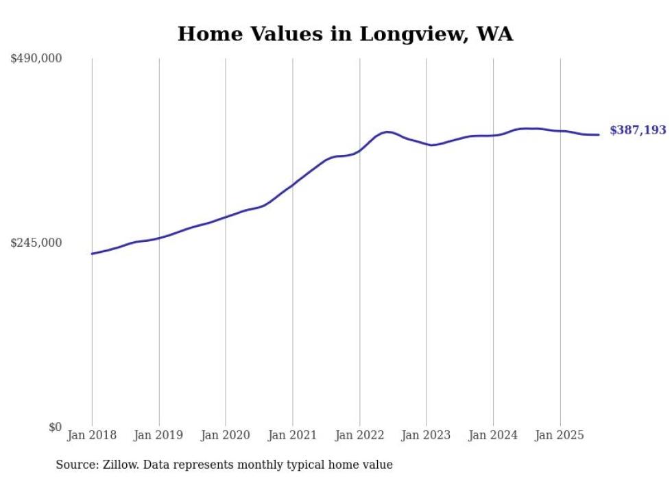 Stacker compiled a list of cities with the most expensive homes in the Longview metro area using data from Zillow. Charts show the monthly typical home value since January 2018. All 10 cities and towns with data available were included in the list.