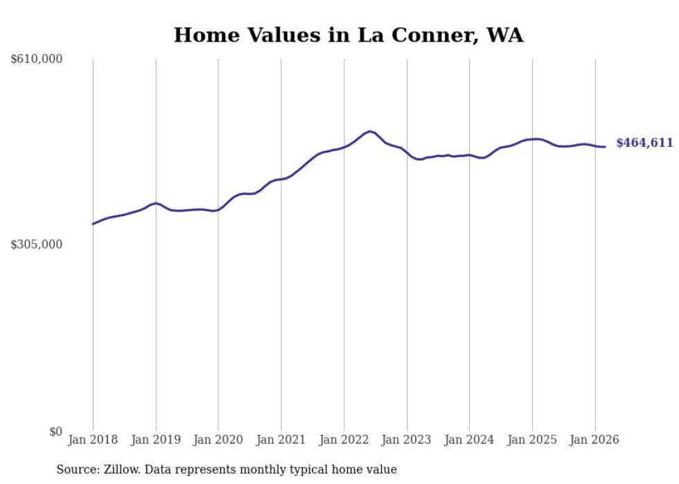 Stacker compiled a list of cities with the most expensive homes in the Mount Vernon-Anacortes, WA metro area using data from Zillow. Charts show the monthly typical home value since January 2018.