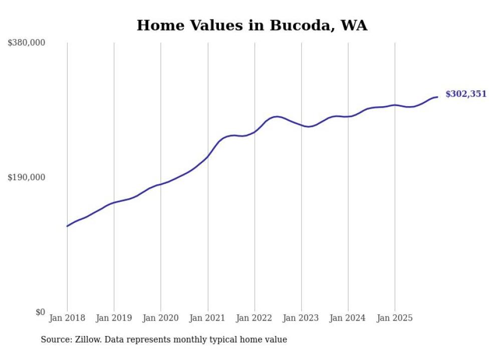 Stacker compiled a list of cities with the most expensive homes in the Olympia metro area using data from Zillow. Charts show the monthly typical home value since January 2018. All 8 cities and towns with data available were included in the list.