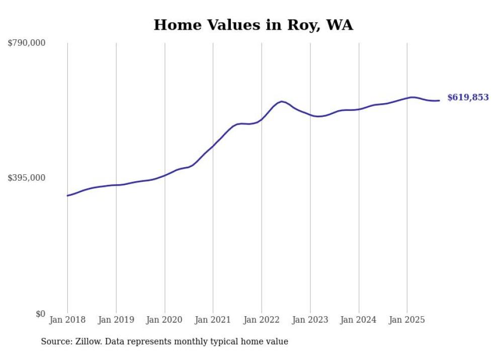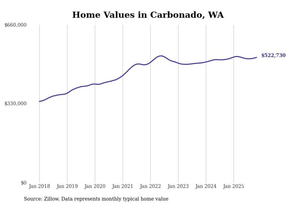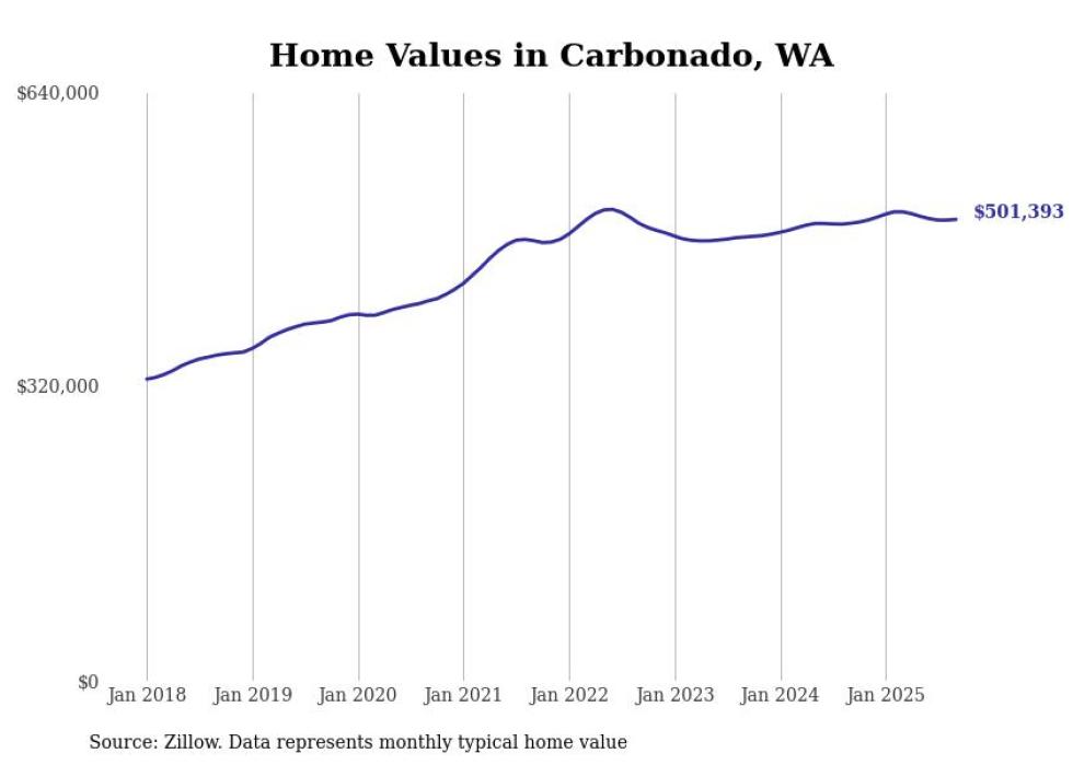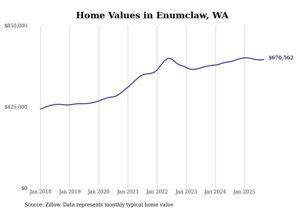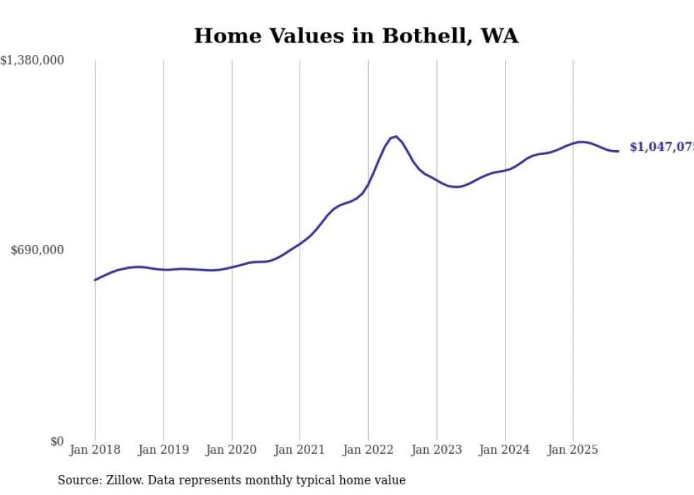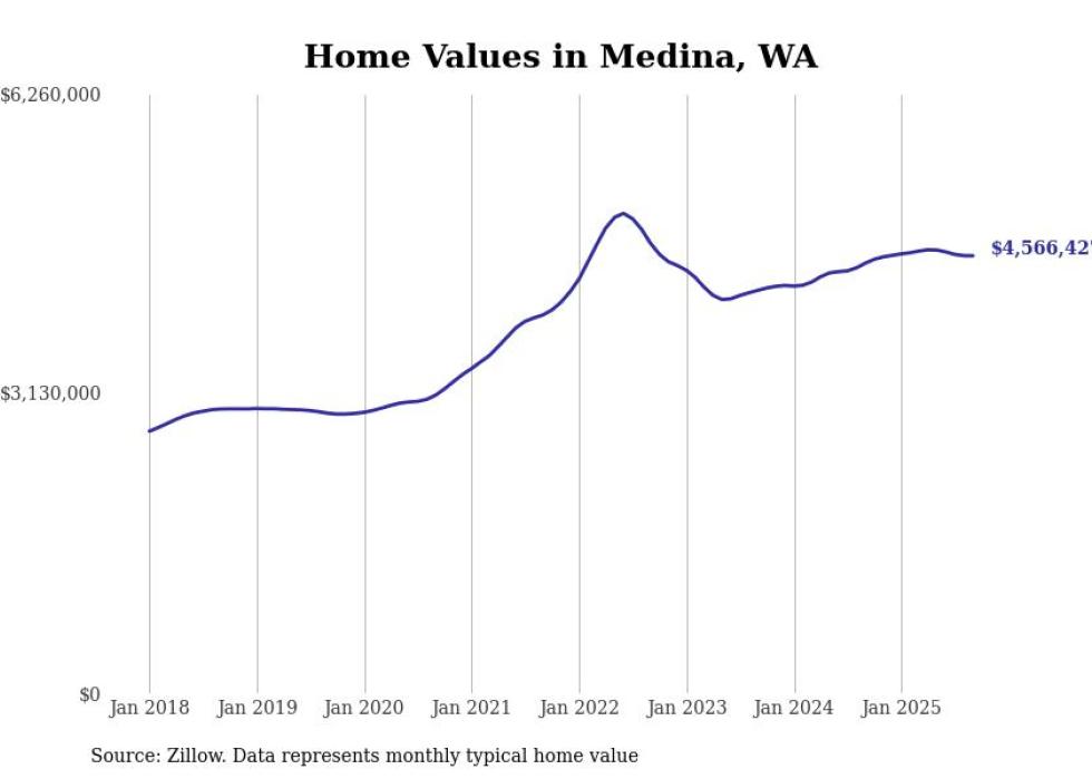 Stacker compiled a list of cities with the most expensive homes in the Seattle-Tacoma-Bellevue, WA metro area using data from Zillow. Charts show the monthly typical home value since January 2018.