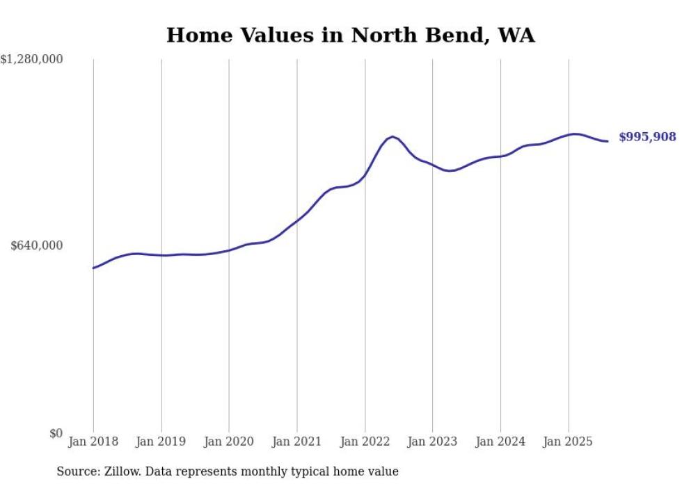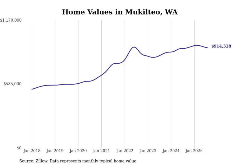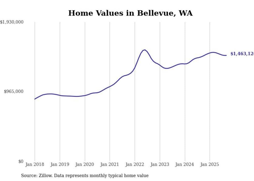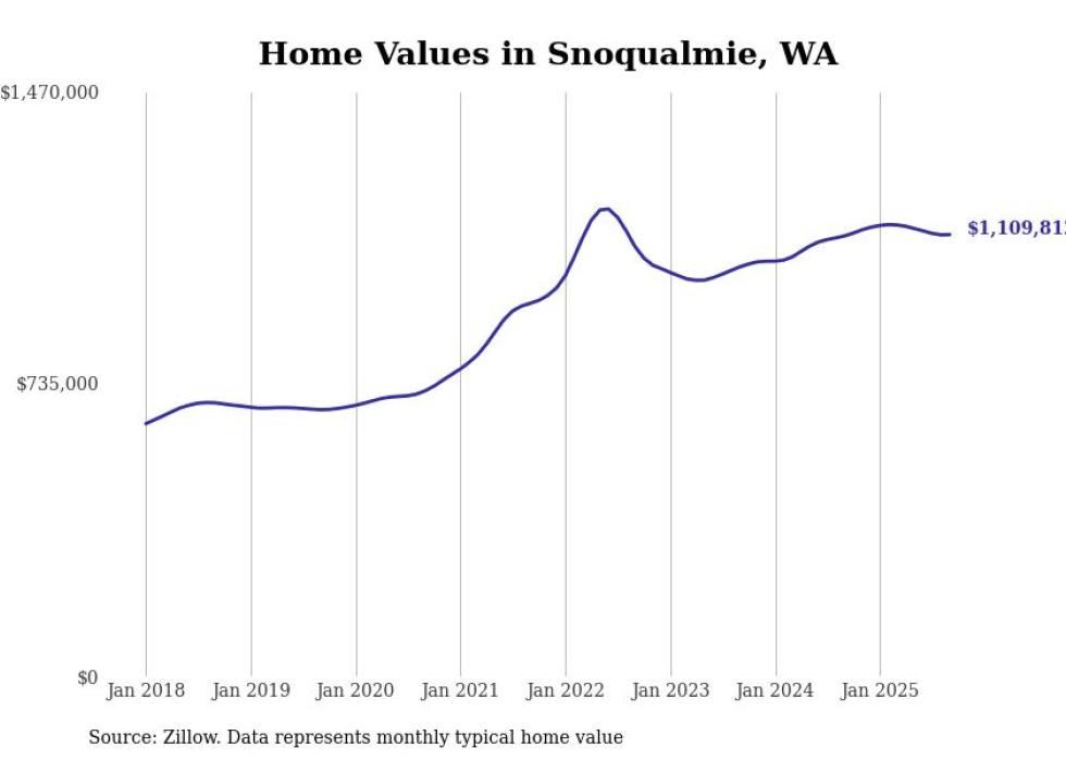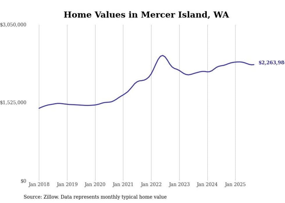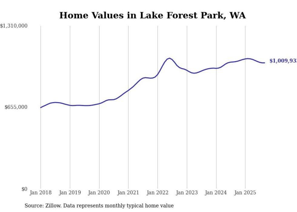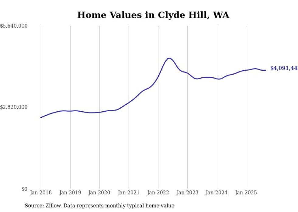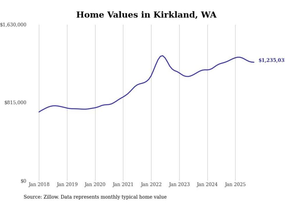 Stacker compiled a list of cities with the most expensive homes in the Seattle metro area using data from Zillow. Charts show the monthly typical home value since January 2018. Data was available for 96 cities and towns.