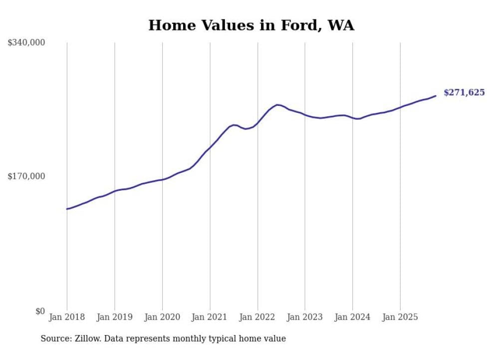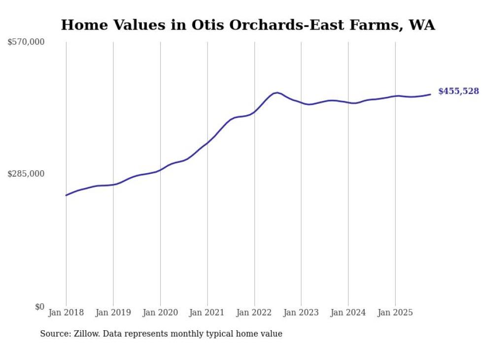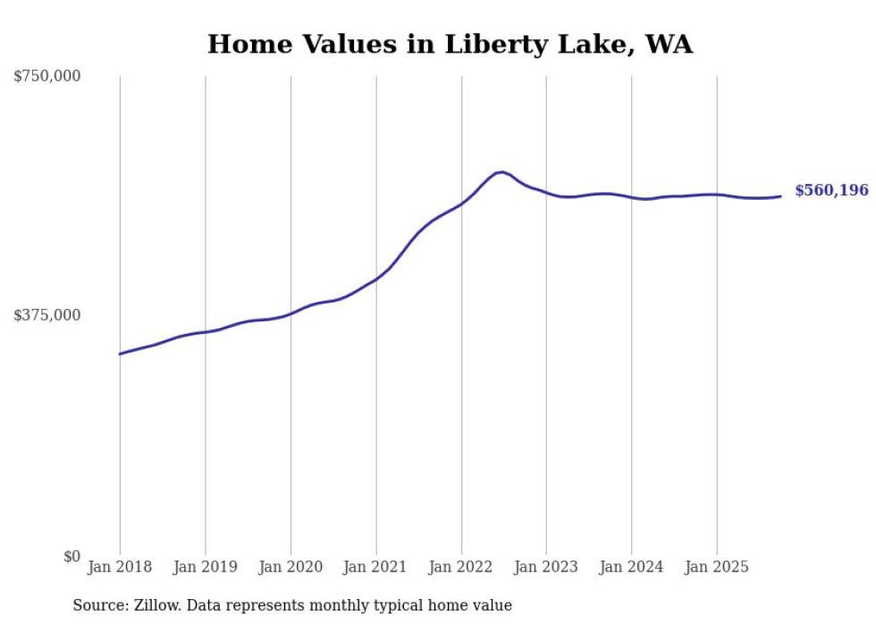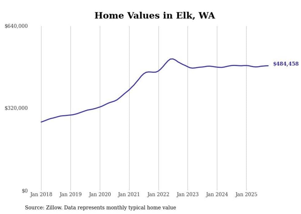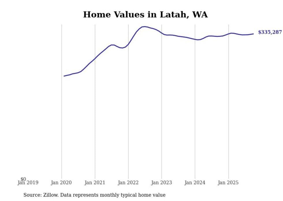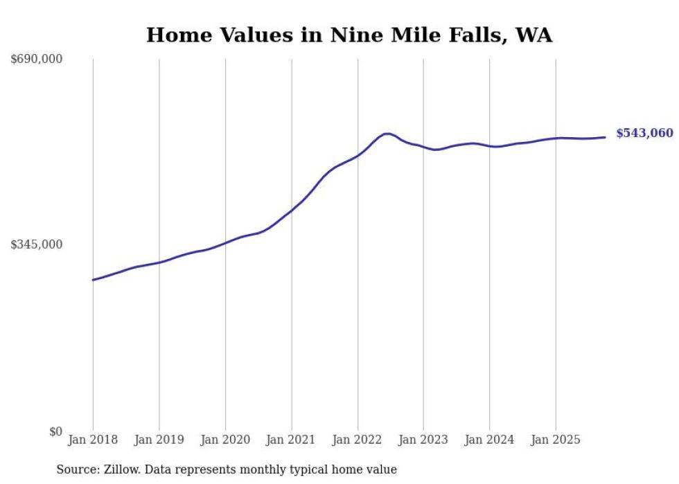 Stacker compiled a list of cities with the most expensive homes in the Spokane-Spokane Valley, WA metro area using data from Zillow. Charts show the monthly typical home value since January 2018.