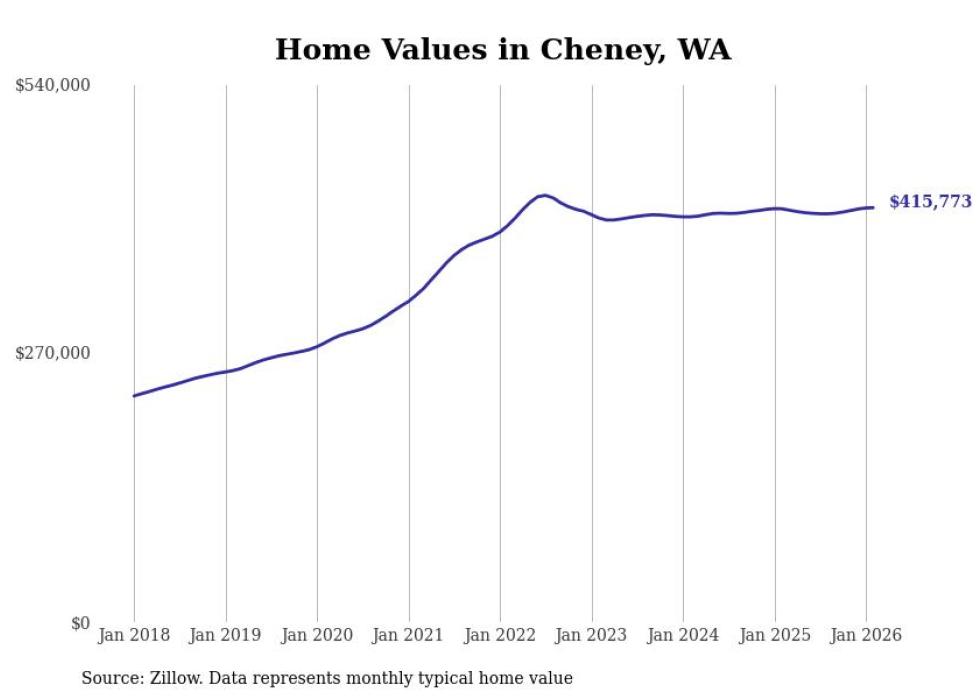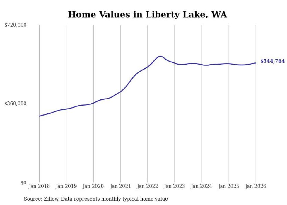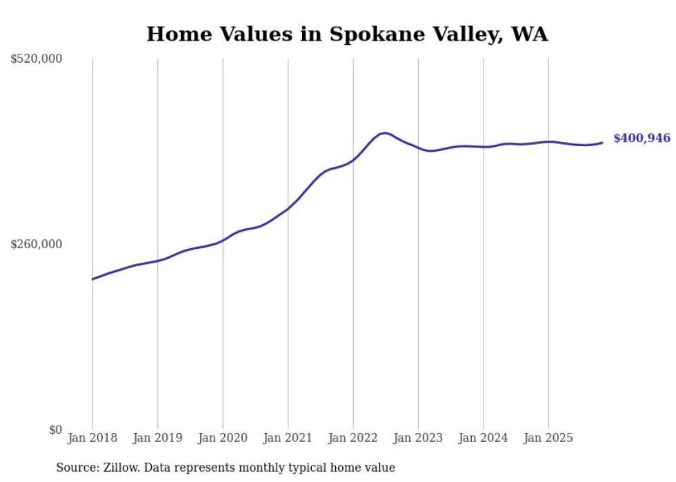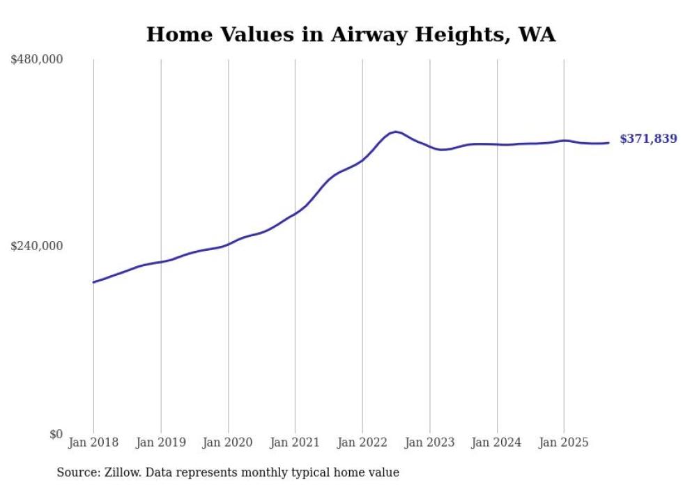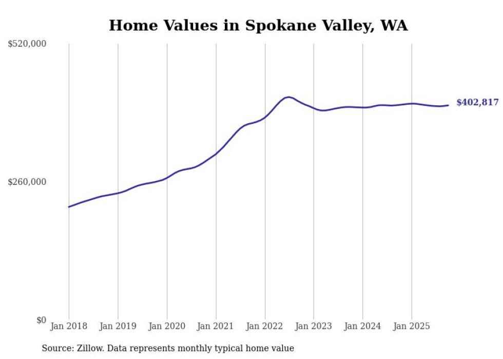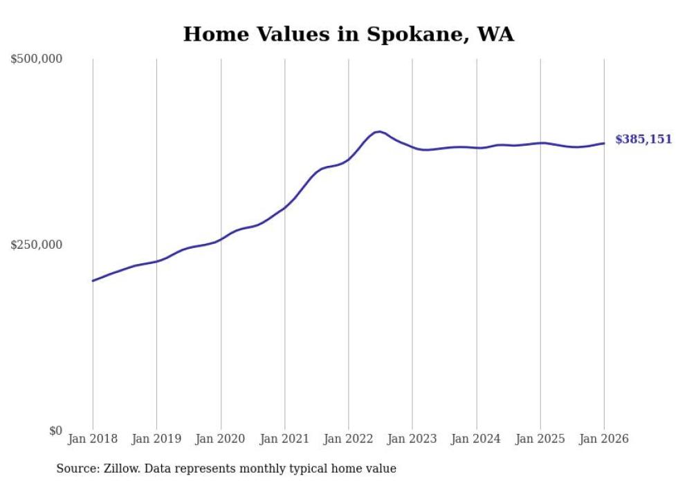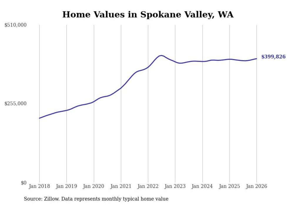 Stacker compiled a list of cities with the most expensive homes in the Spokane metro area using data from Zillow. Charts show the monthly typical home value since January 2018. Data was available for 34 cities and towns.