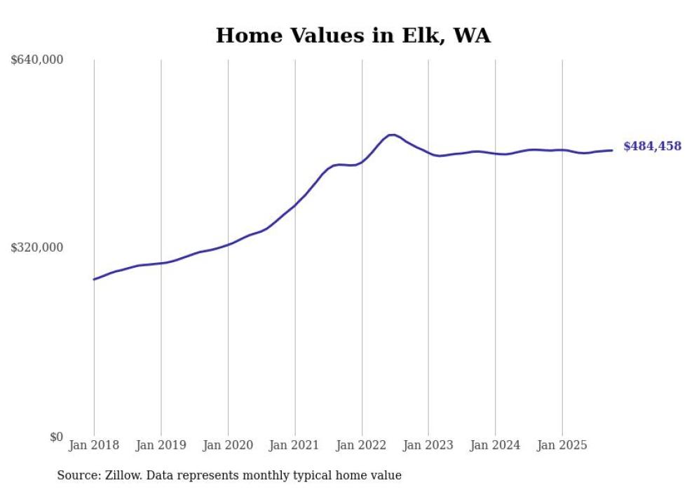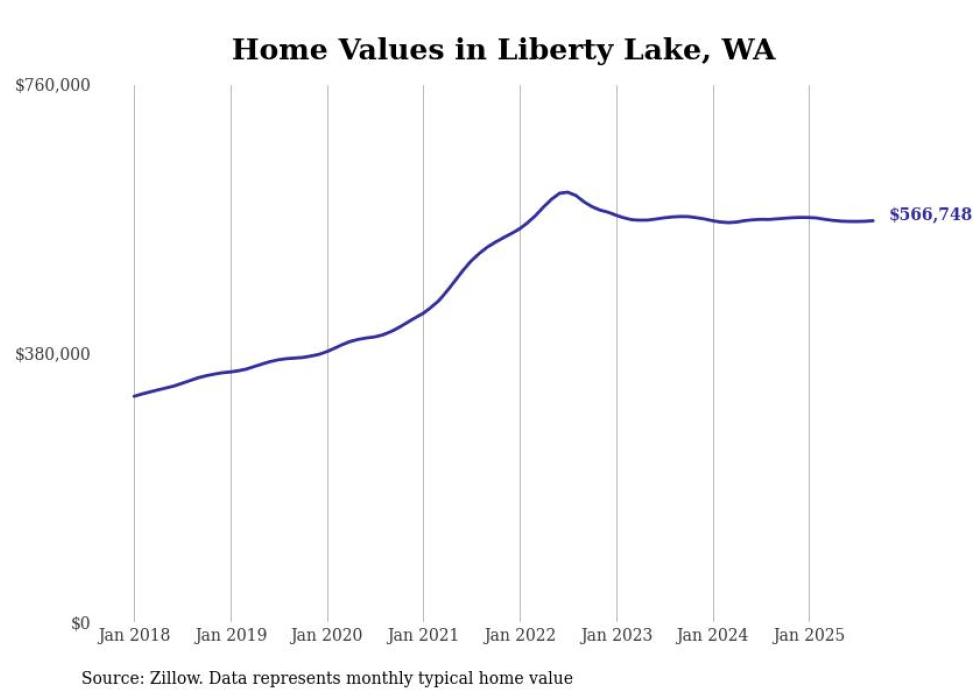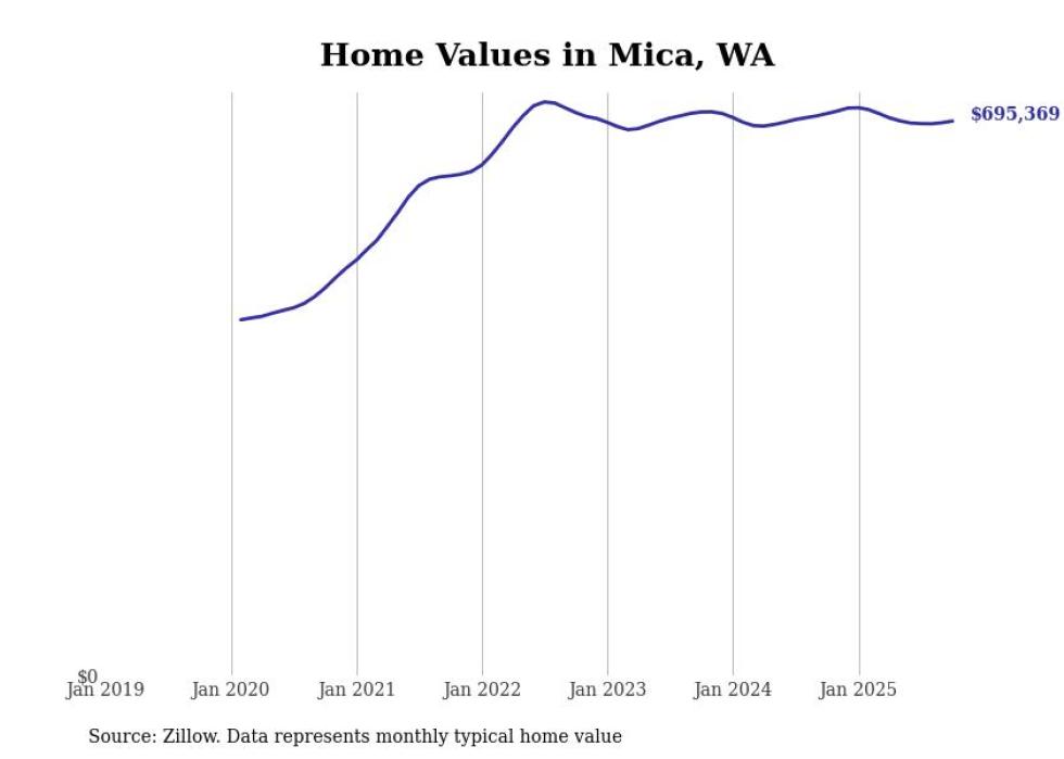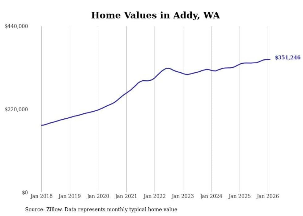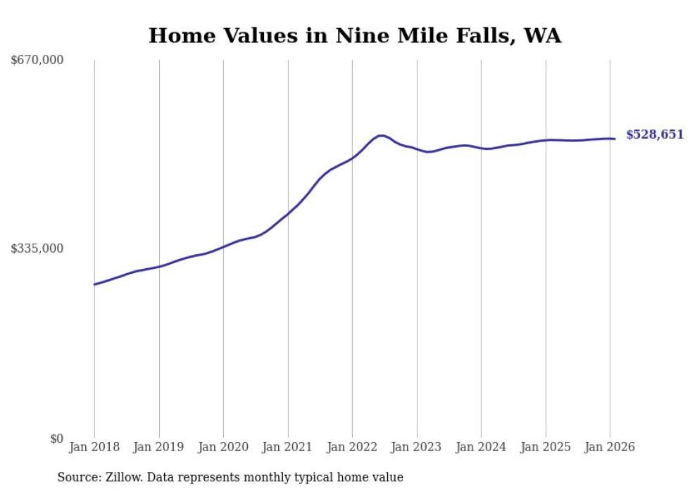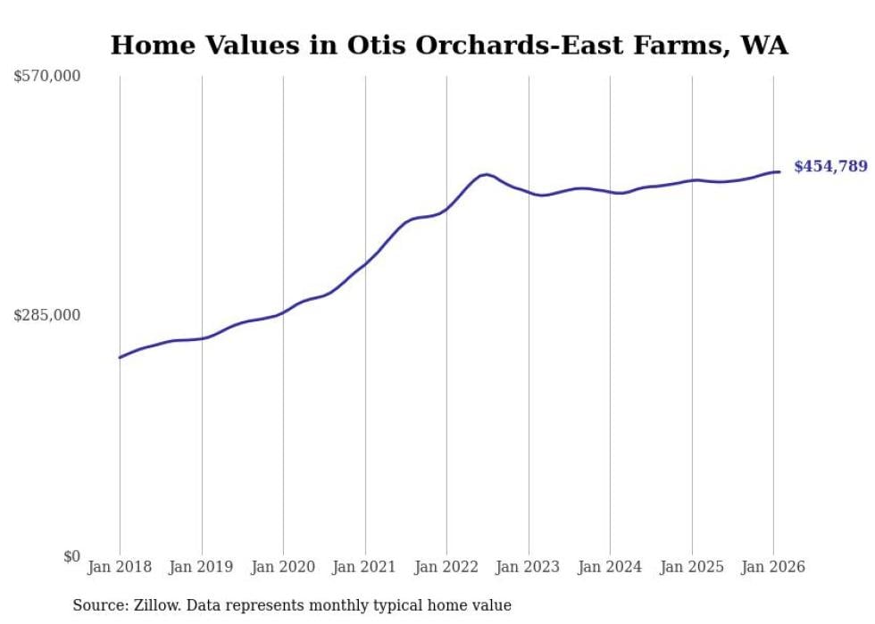 Stacker compiled a list of cities with the most expensive homes in the Spokane metro area using data from Zillow. Charts show the monthly typical home value since January 2018. Data was available for 34 cities and towns.
