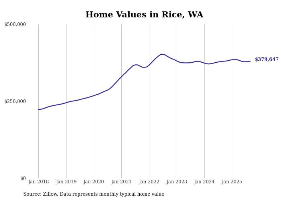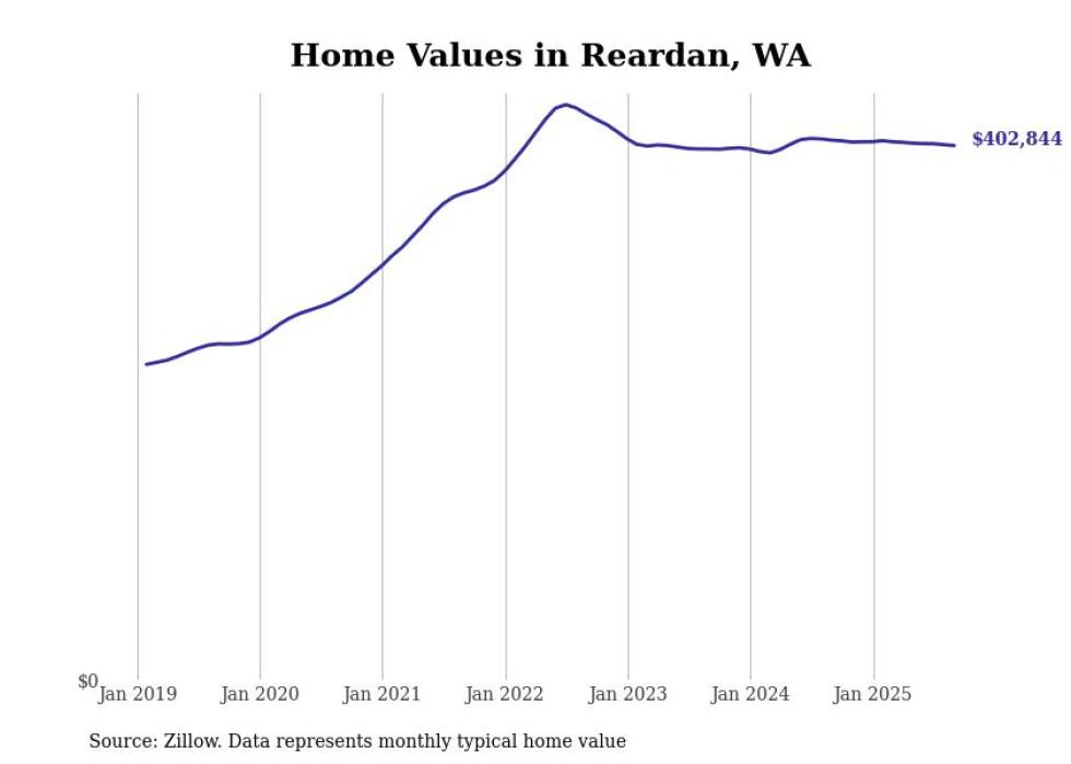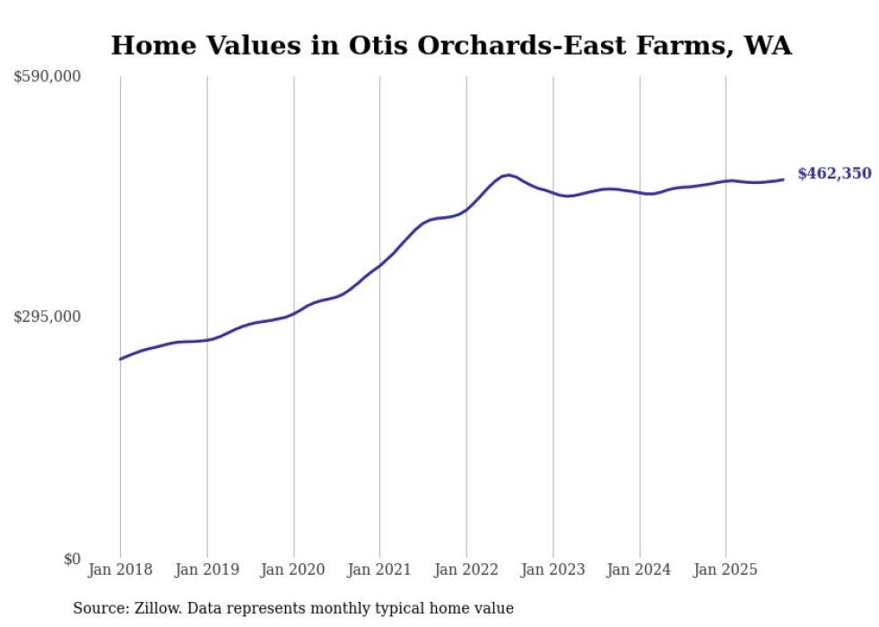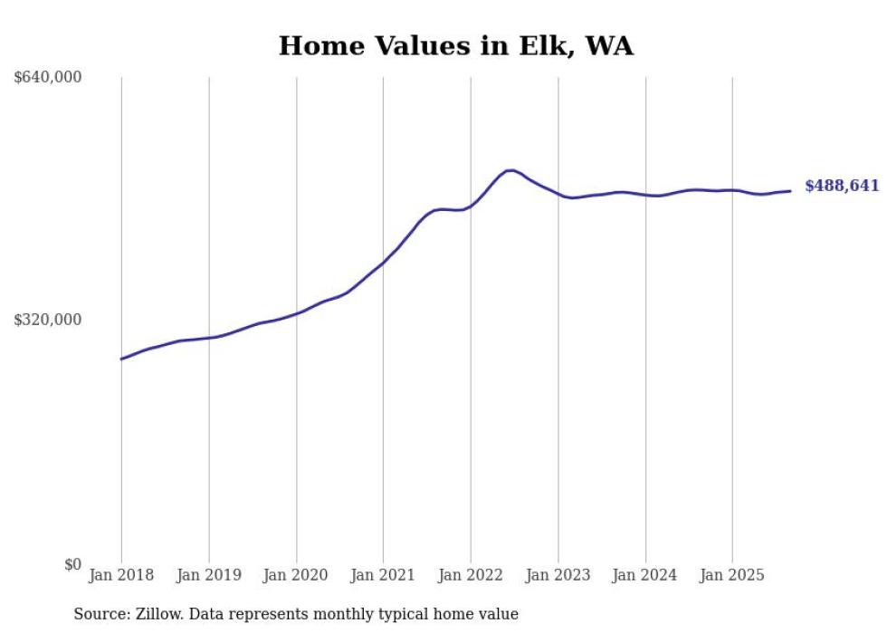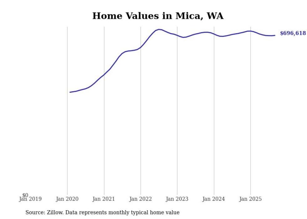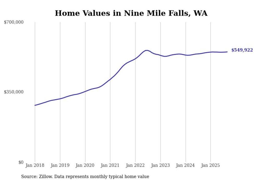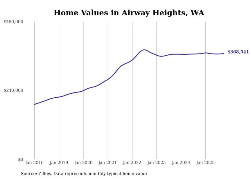 Stacker compiled a list of cities with the most expensive homes in the Spokane metro area using data from Zillow. Charts show the monthly typical home value since January 2018. Data was available for 34 cities and towns.
