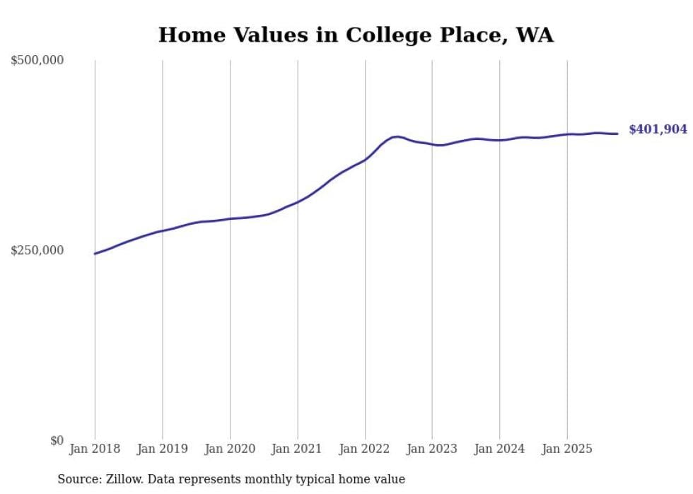 Stacker compiled a list of cities with the most expensive homes in the Walla Walla, WA metro area using data from Zillow. Charts show the monthly typical home value since January 2018.
