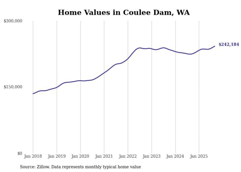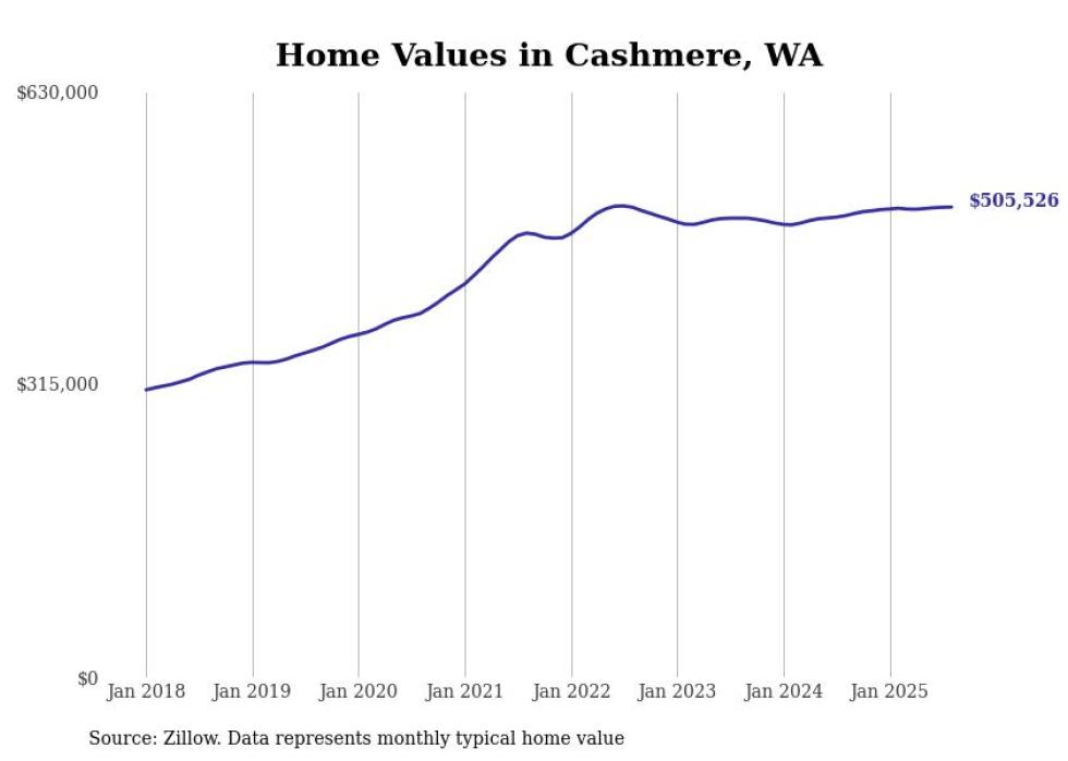 Stacker compiled a list of cities with the most expensive homes in the Wenatchee, WA metro area using data from Zillow. Charts show the monthly typical home value since January 2018.