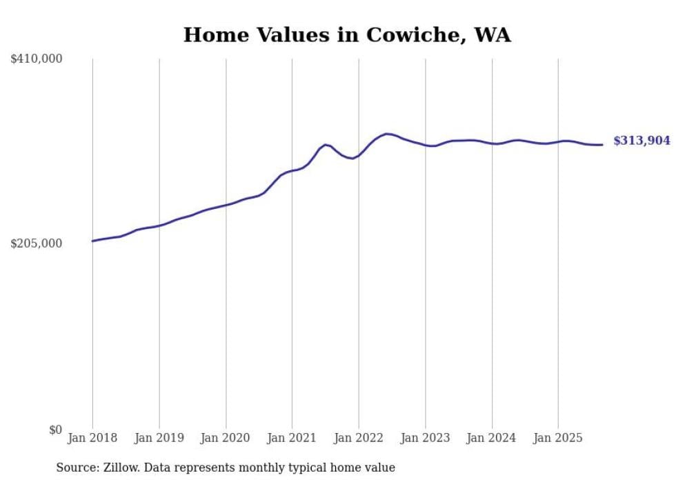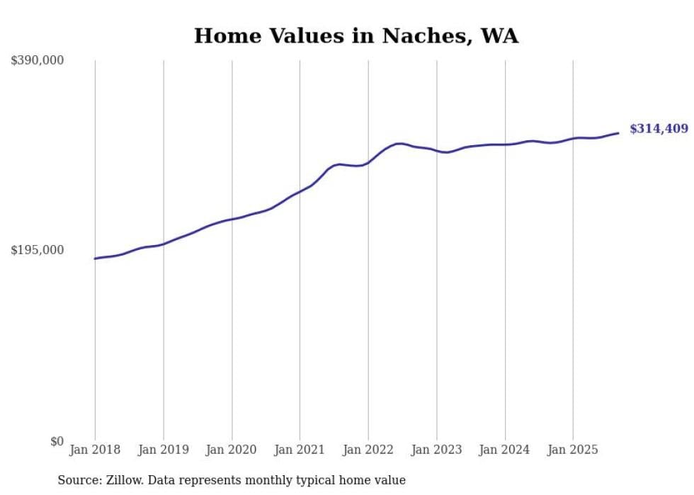 Stacker compiled a list of cities with the most expensive homes in the Yakima, WA metro area using data from Zillow. Charts show the monthly typical home value since January 2018.
