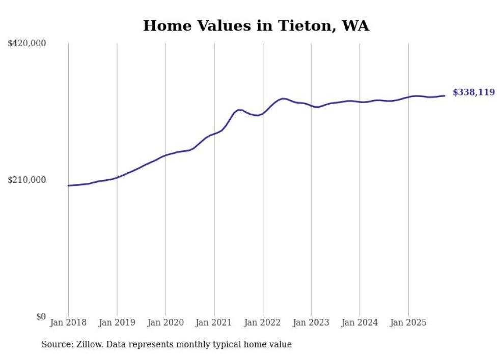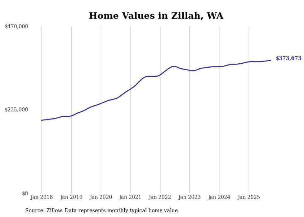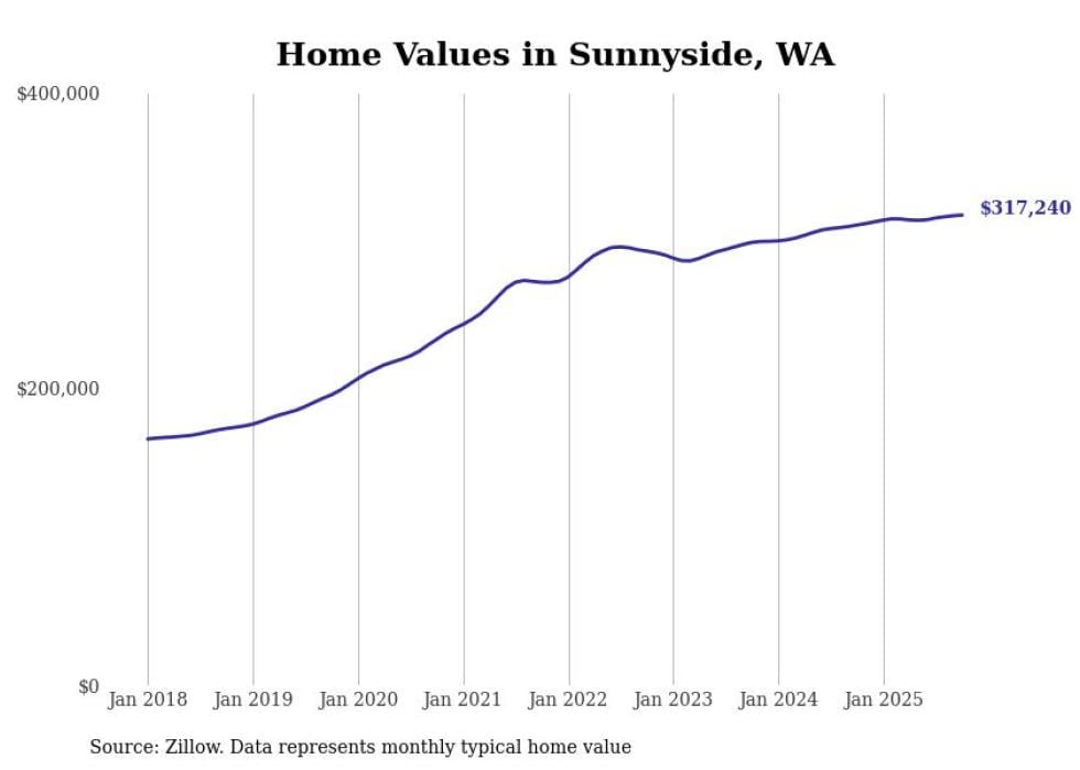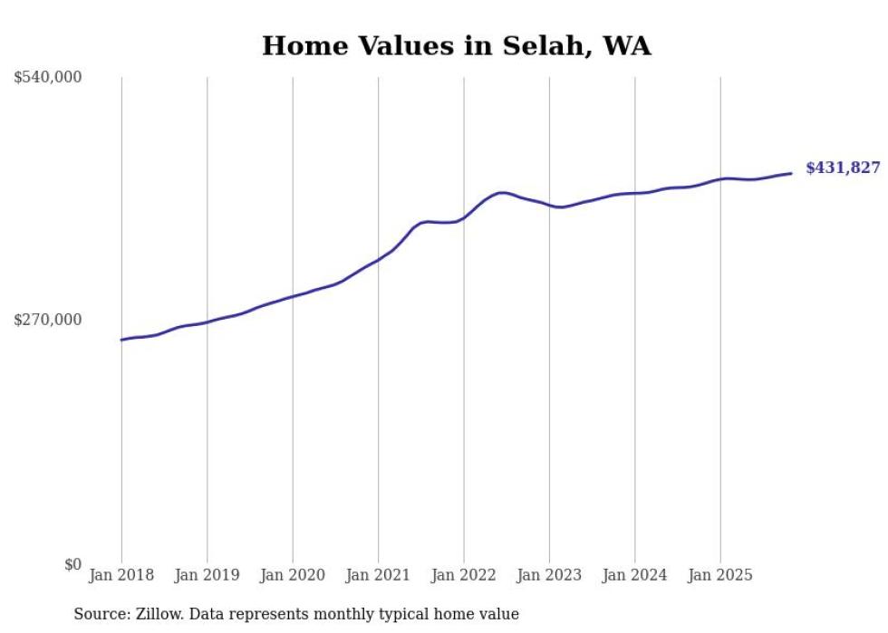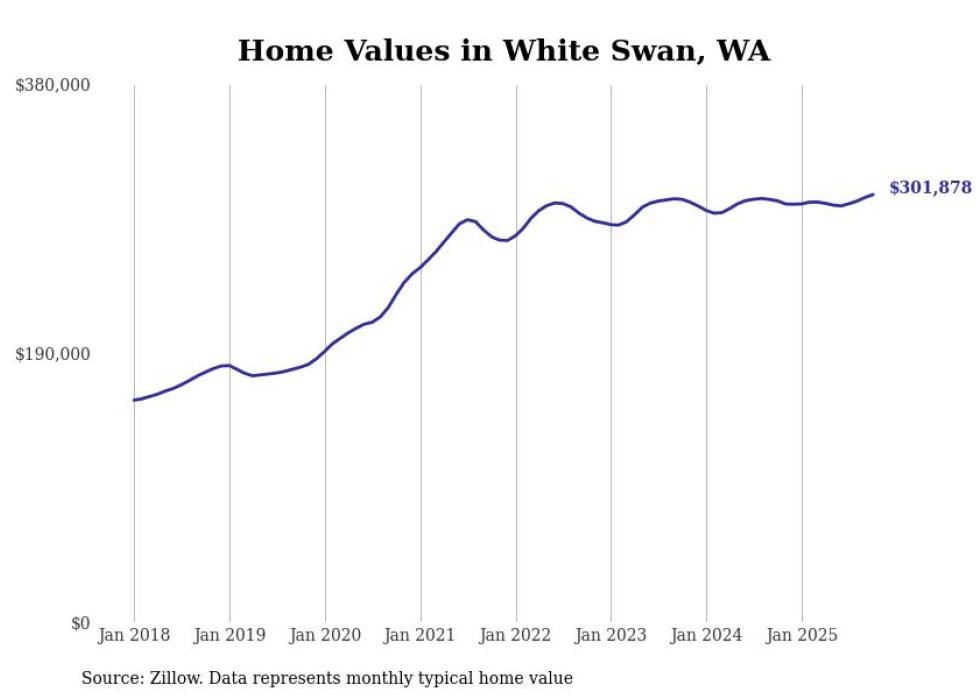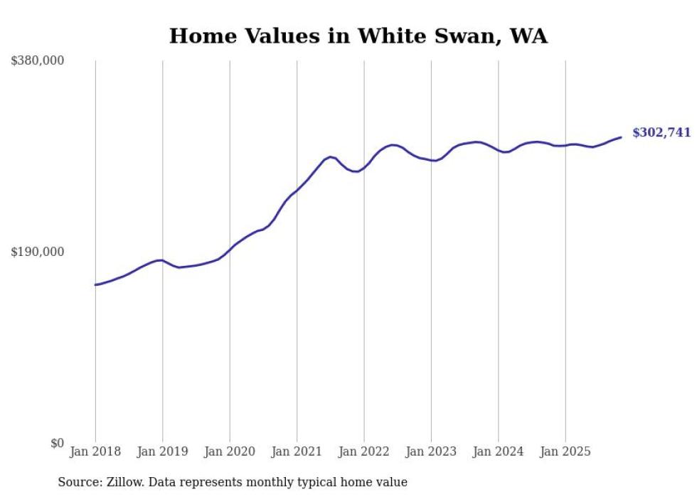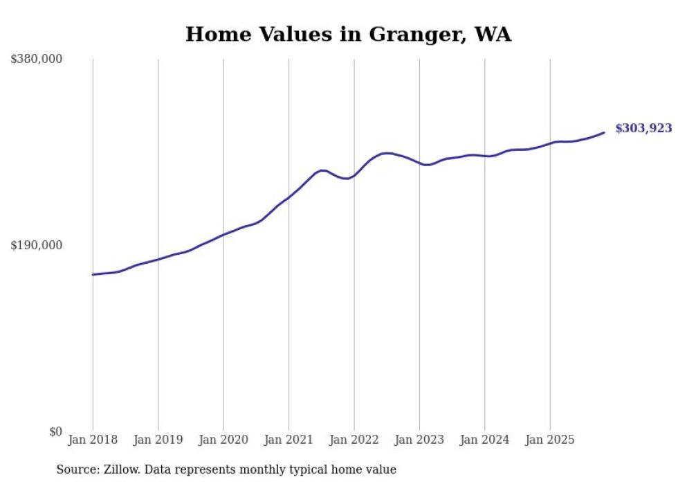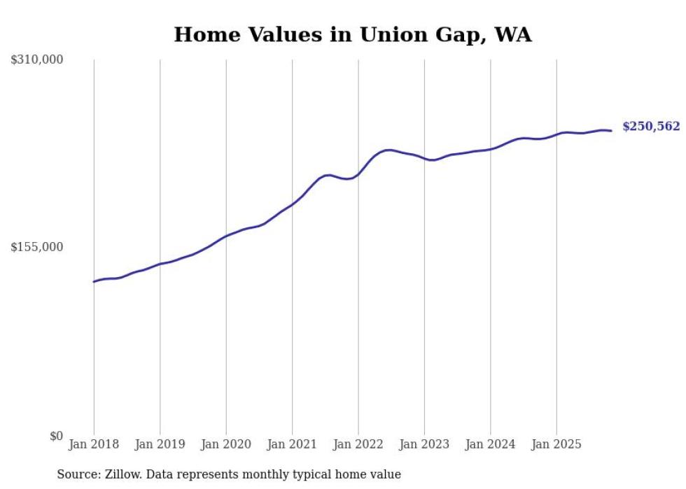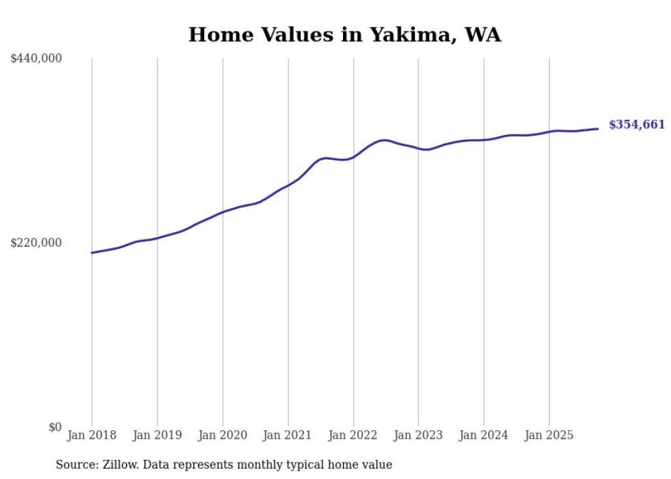 Stacker compiled a list of cities with the most expensive homes in the Yakima metro area using data from Zillow. Charts show the monthly typical home value since January 2018. All 18 cities and towns with data available were included in the list.