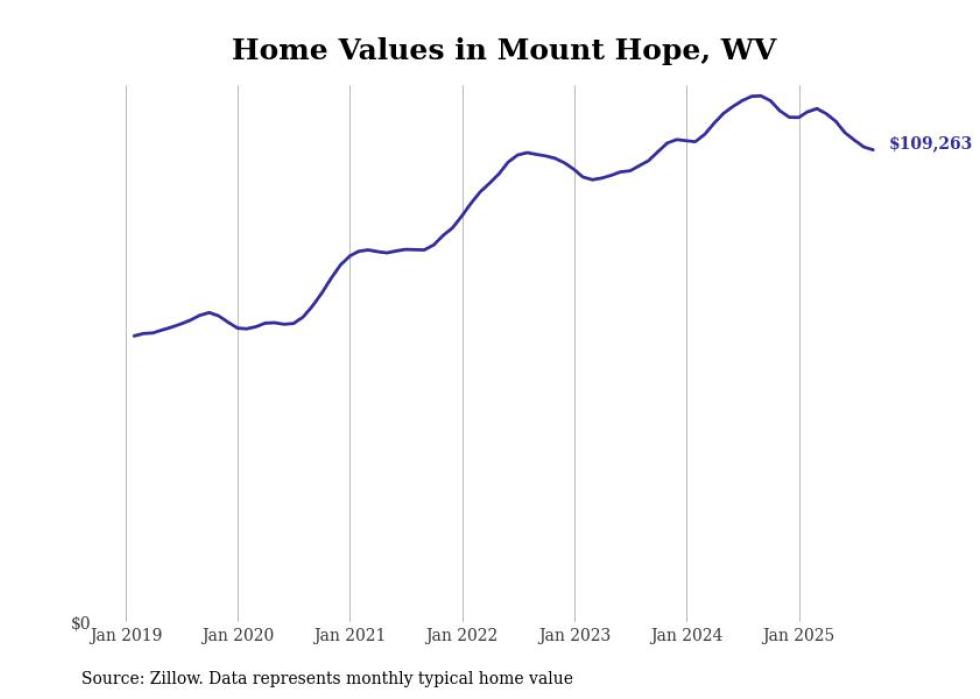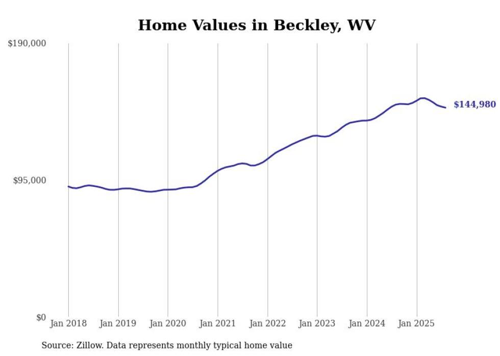 Stacker compiled a list of cities with the most expensive homes in the Beckley, WV metro area using data from Zillow. Charts show the monthly typical home value since January 2018.