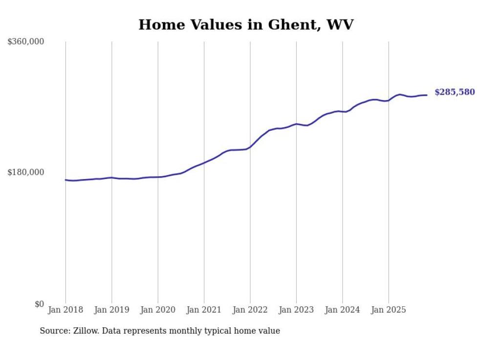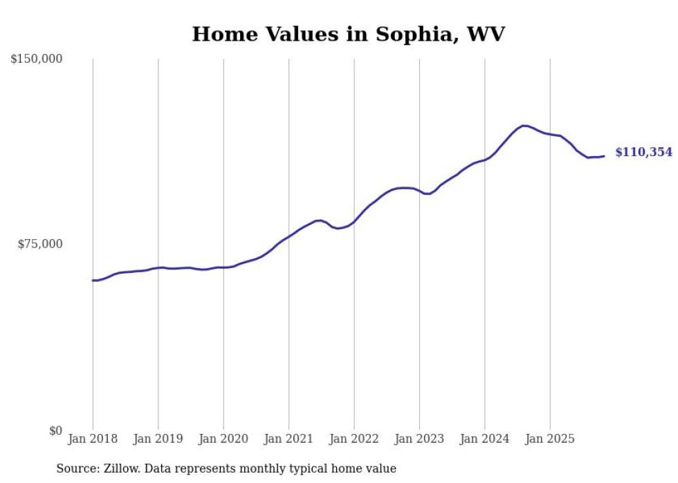 Stacker compiled a list of cities with the most expensive homes in the Beckley metro area using data from Zillow. Charts show the monthly typical home value since January 2018. Data was available for 38 cities and towns.