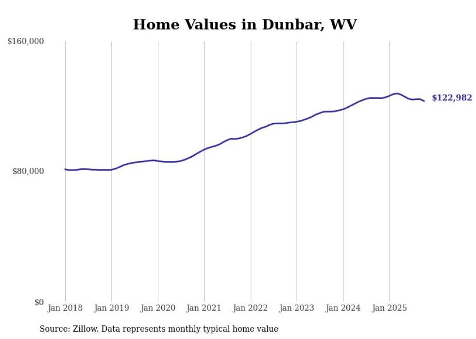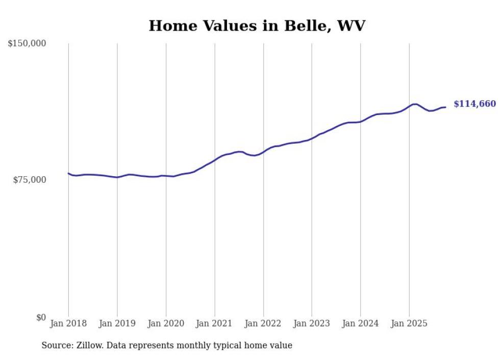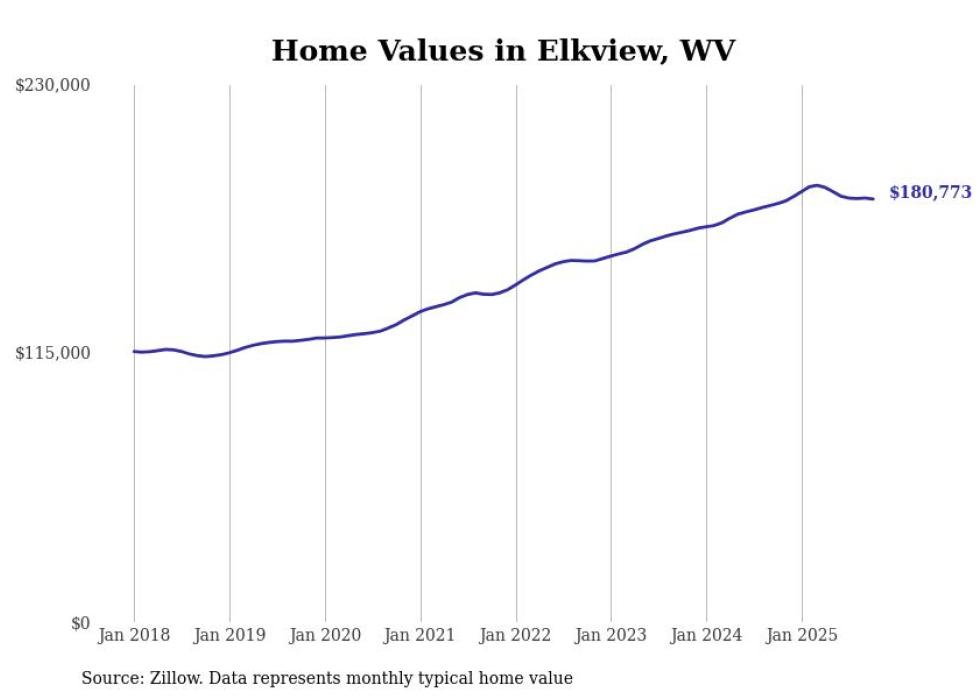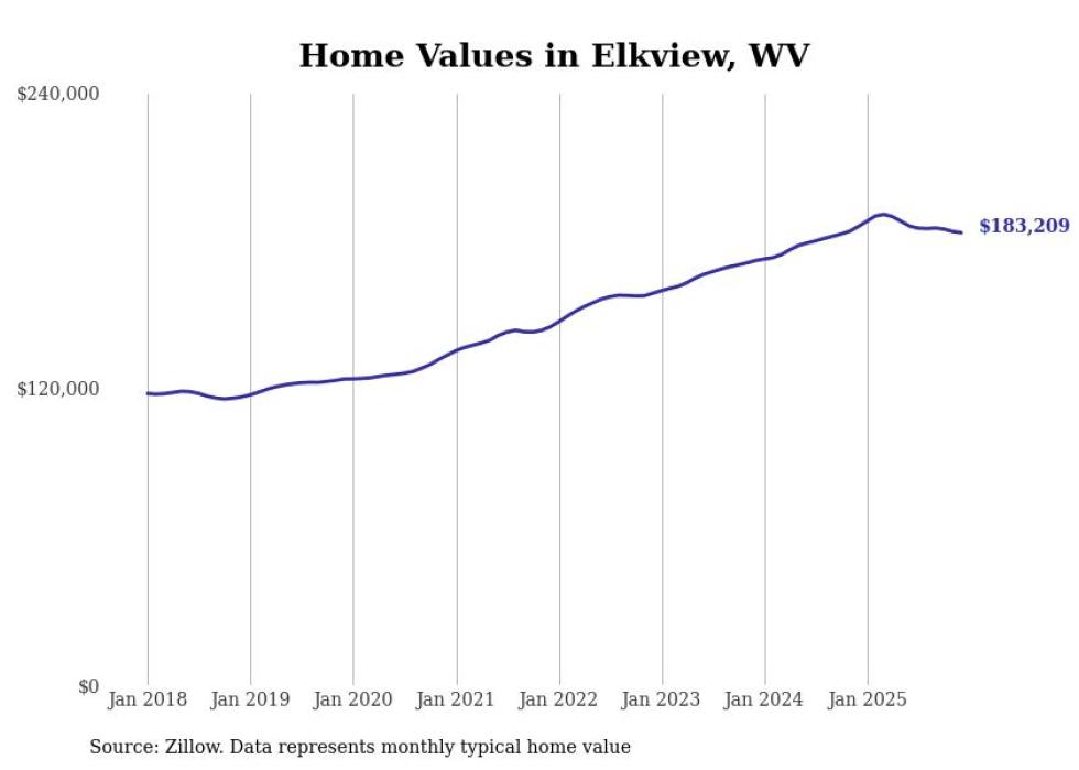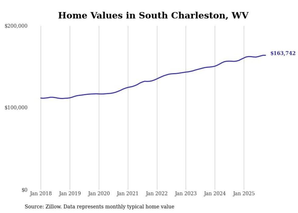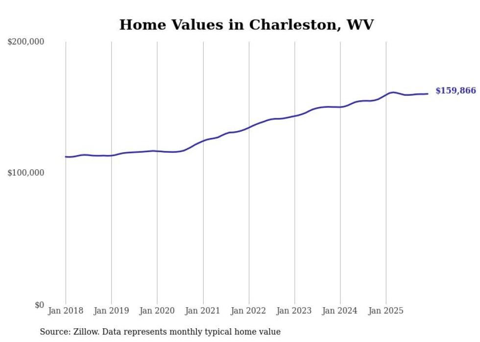 Cities with the fastest-growing home prices in the Charleston, West Virginia metro area