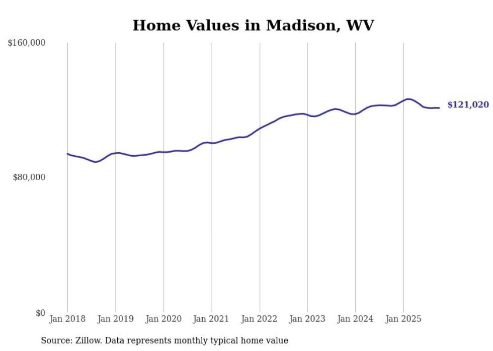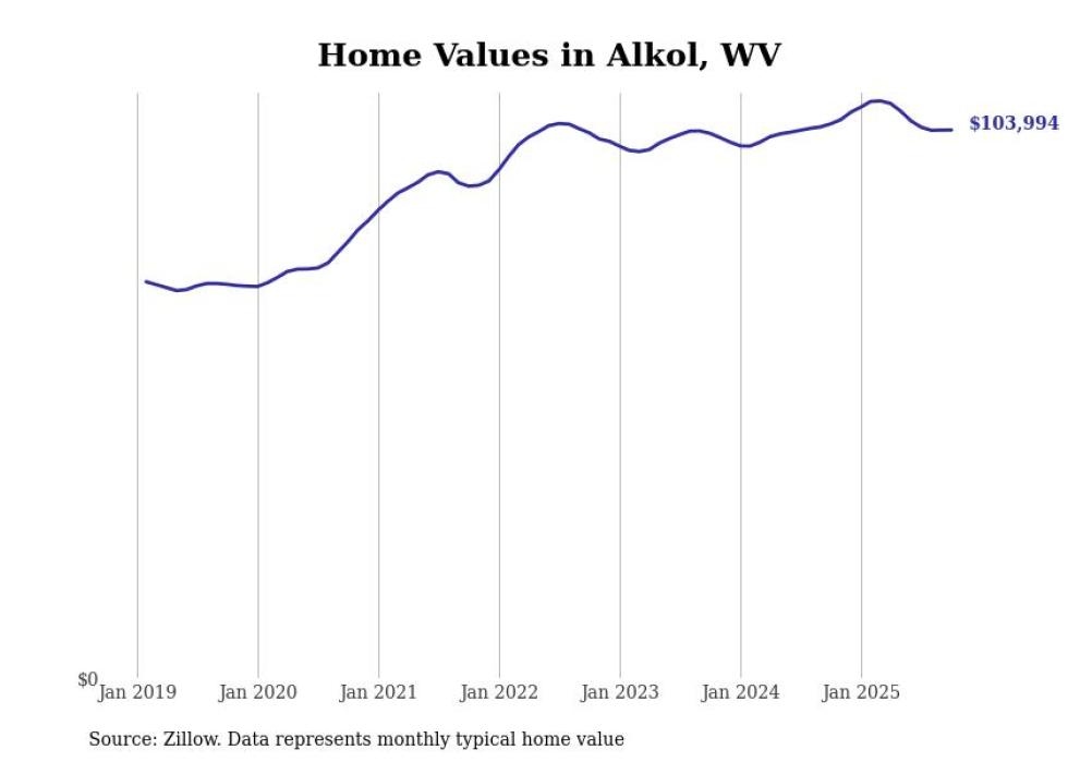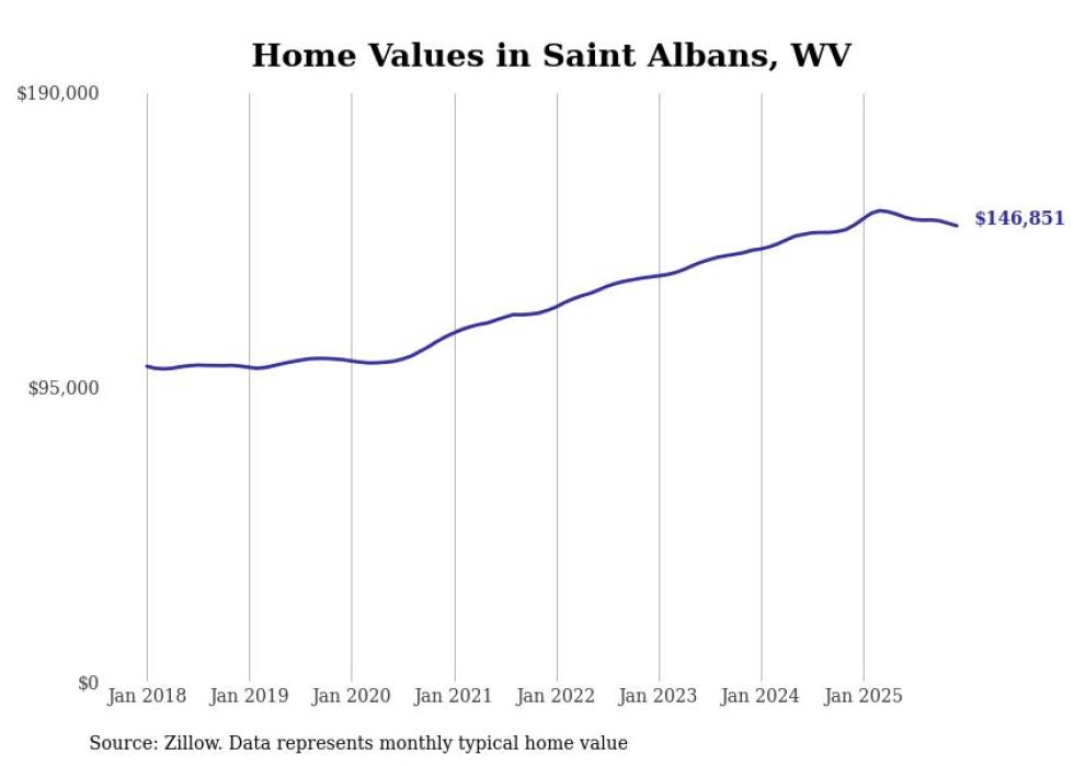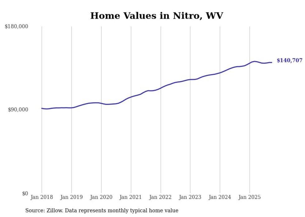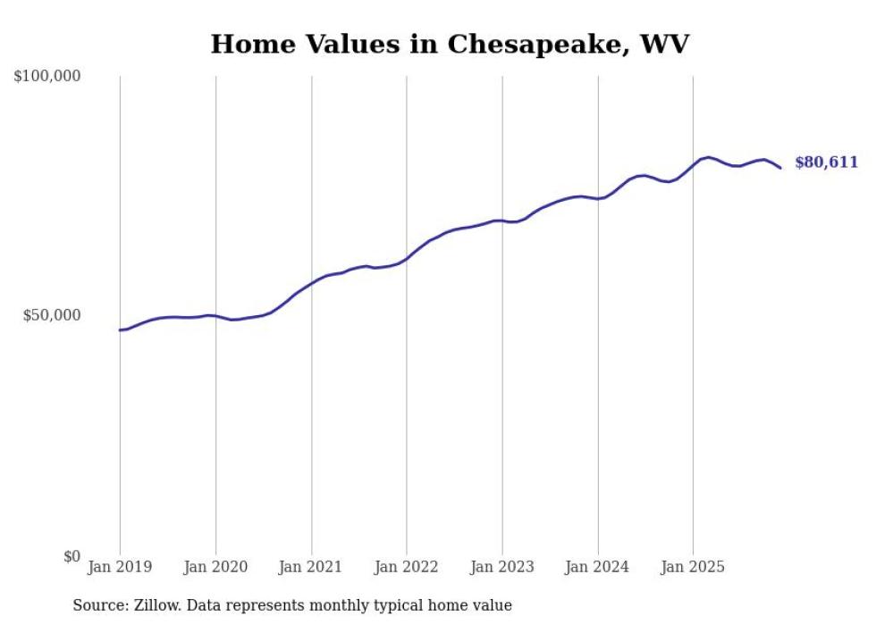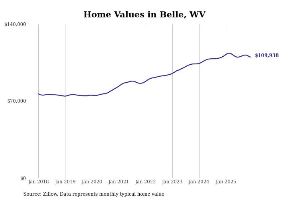 Cities with the fastest-growing home prices in the Charleston, West Virginia metro area