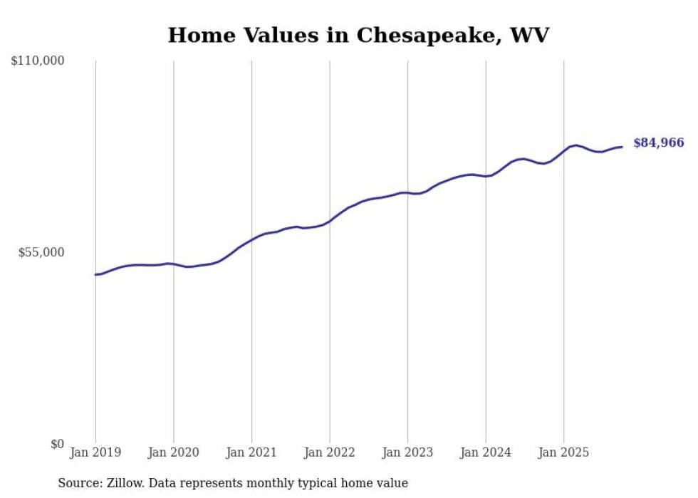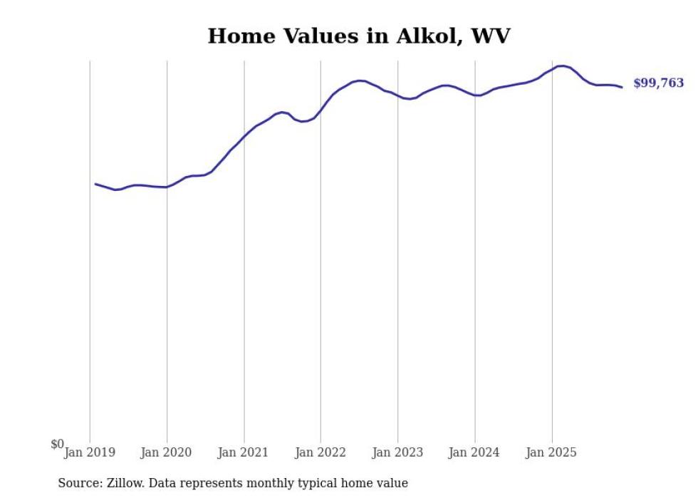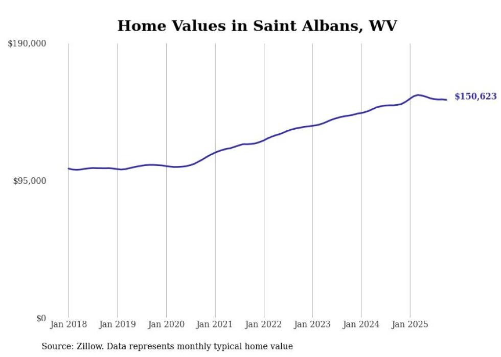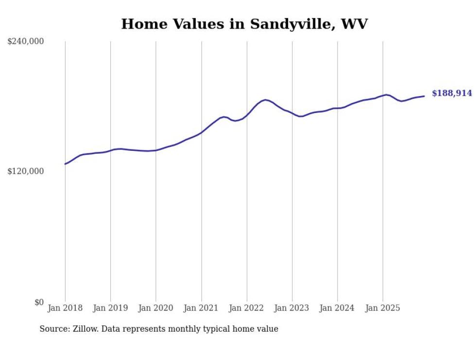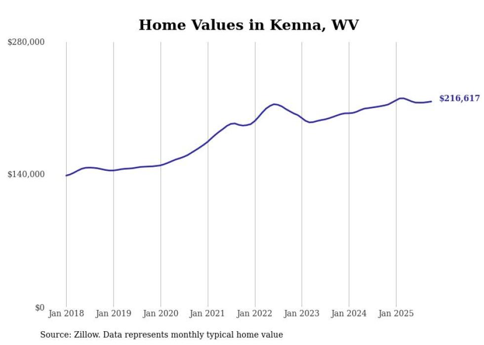 Stacker compiled a list of cities with the most expensive homes in the Charleston, WV metro area using data from Zillow. Charts show the monthly typical home value since January 2018.