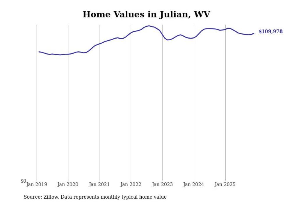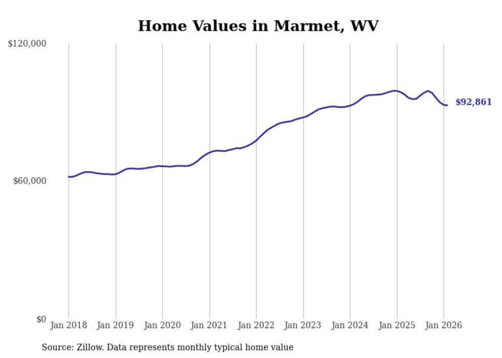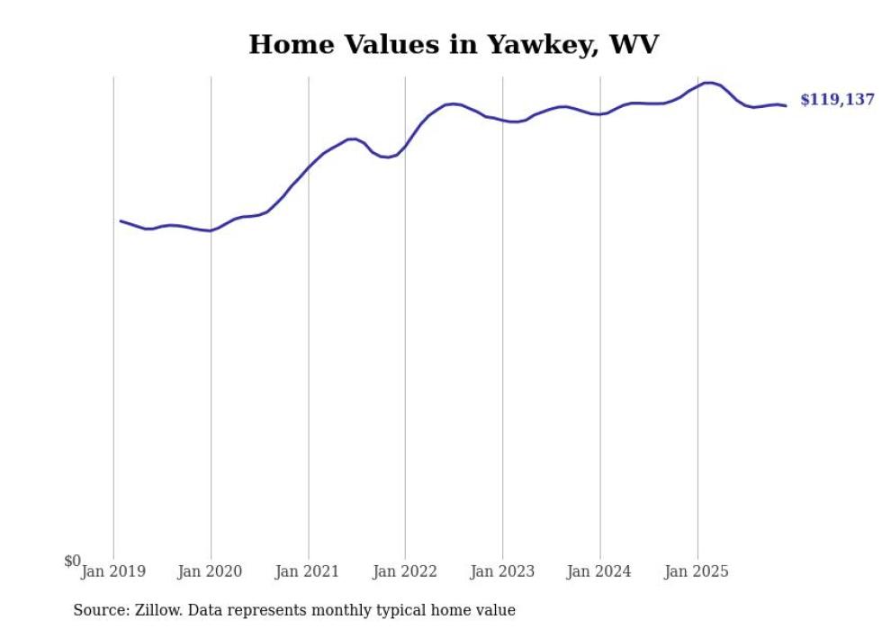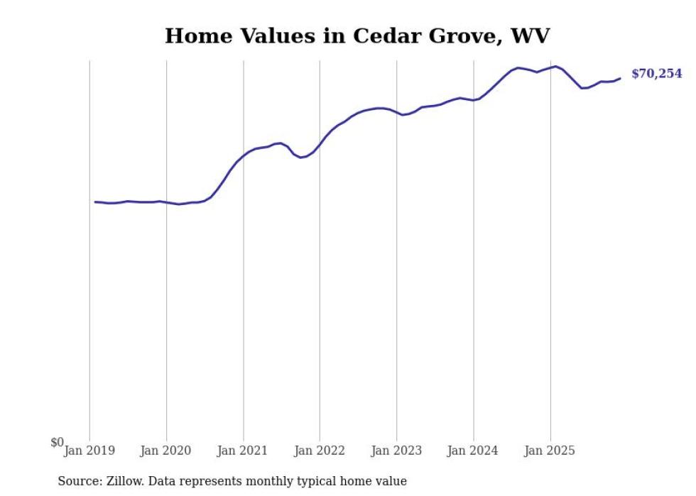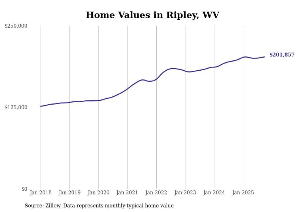 Stacker compiled a list of cities with the most expensive homes in the Charleston, WV metro area using data from Zillow. Charts show the monthly typical home value since January 2018.