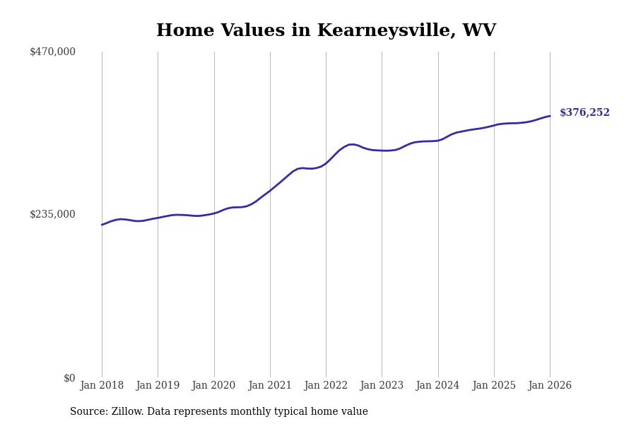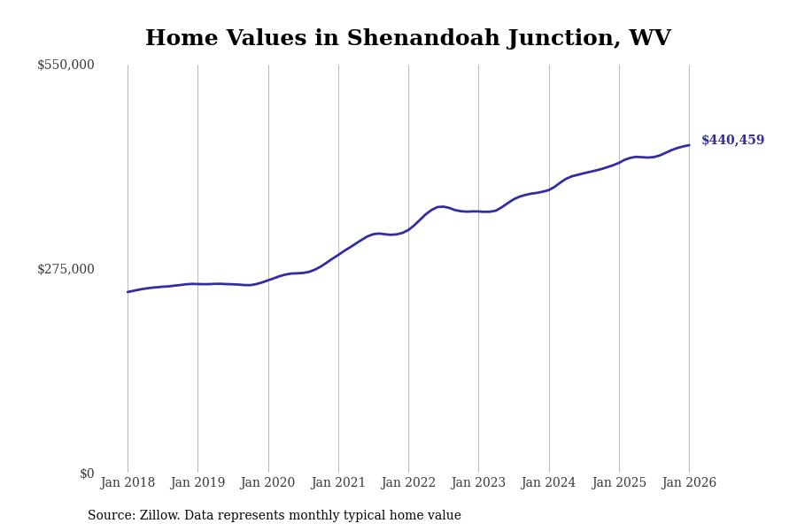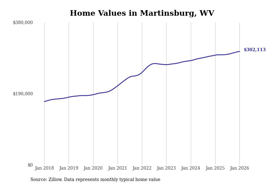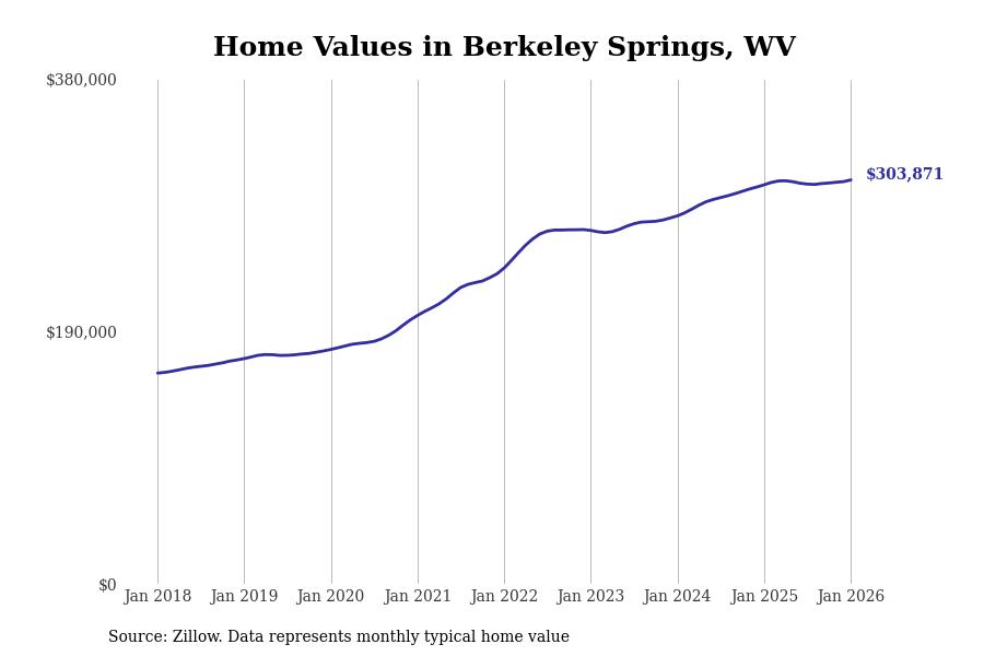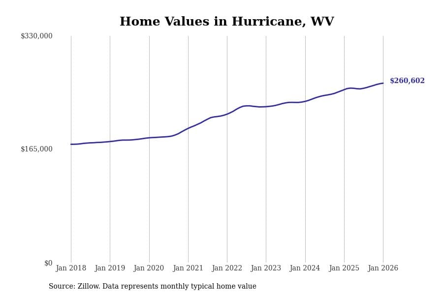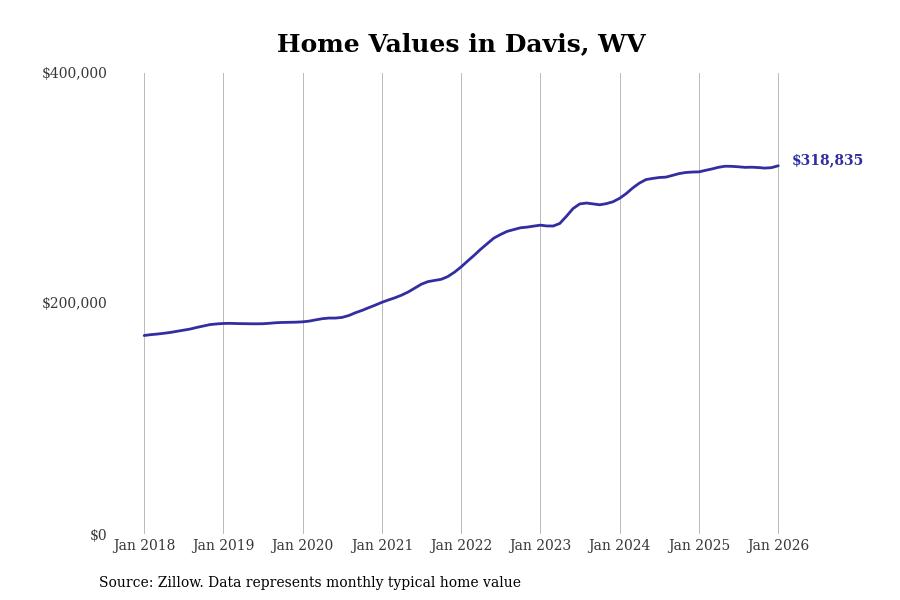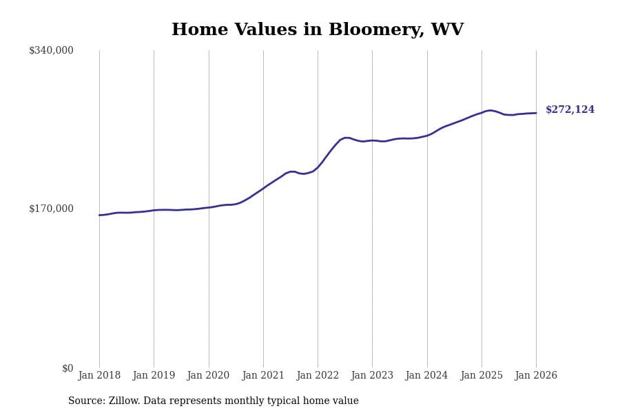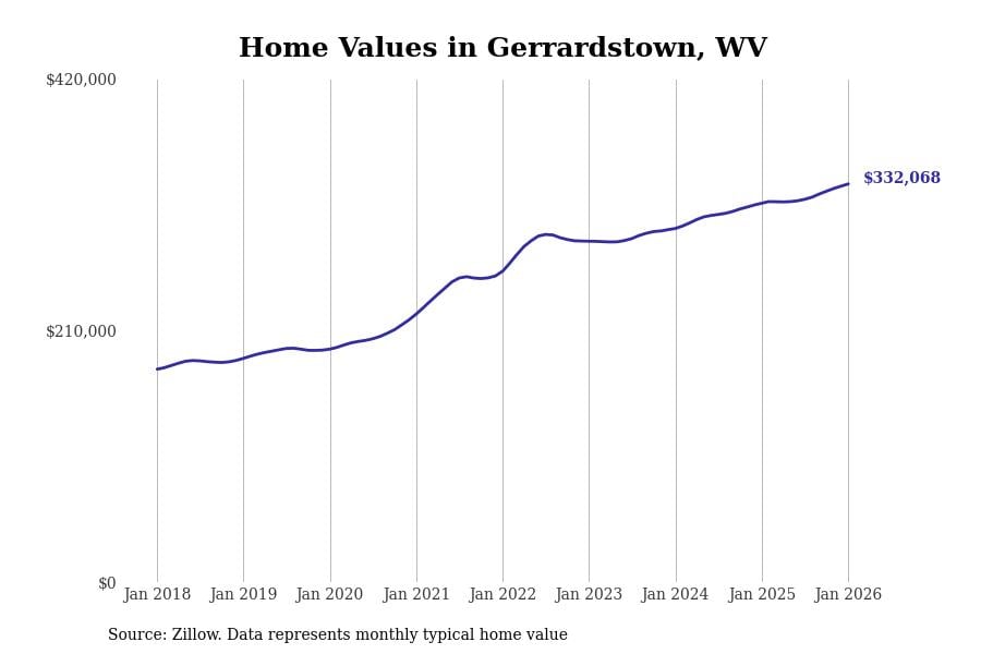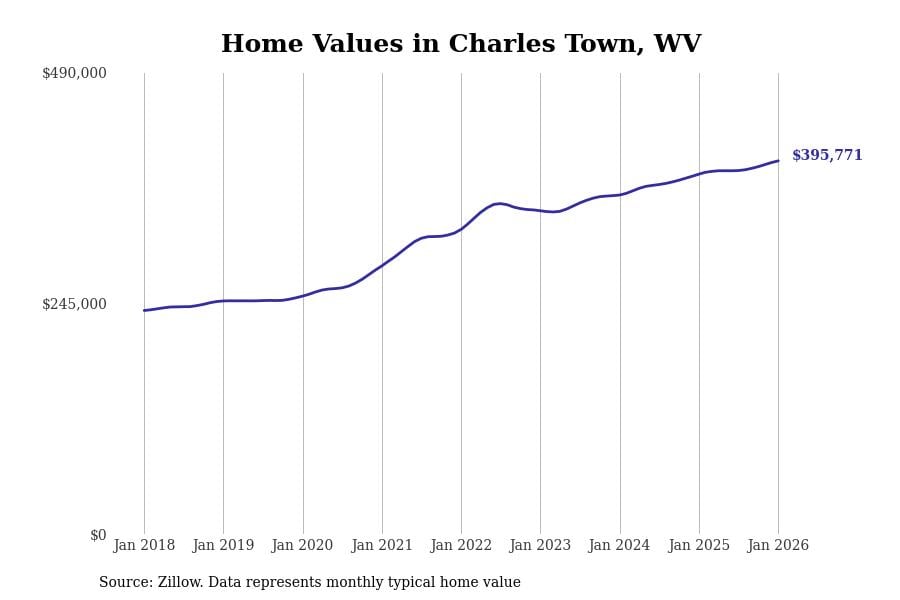 Stacker compiled a list of cities with the most expensive homes in West Virginia using data from Zillow. Cities are ranked by the Zillow Home Values Index for all homes as of January 2026. The charts in this story were created automatically using Matplotlib.