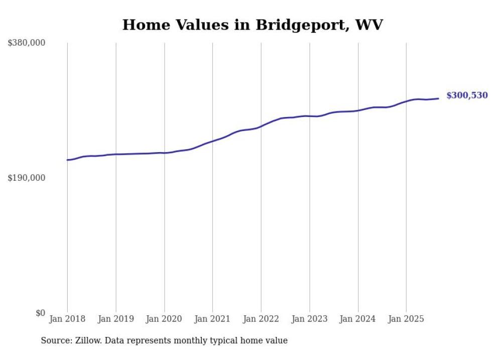 Stacker compiled a list of cities with the most expensive homes in West Virginia using data from Zillow. Cities are ranked by the Zillow Home Values Index for all homes as of September 2025. The charts in this story were created automatically using Matplotlib.