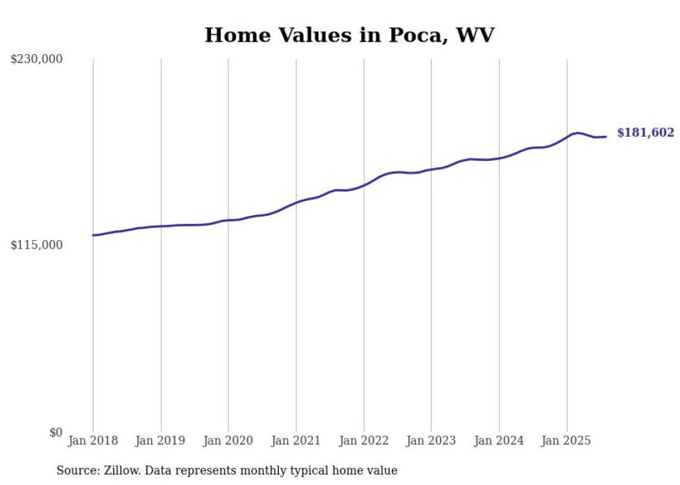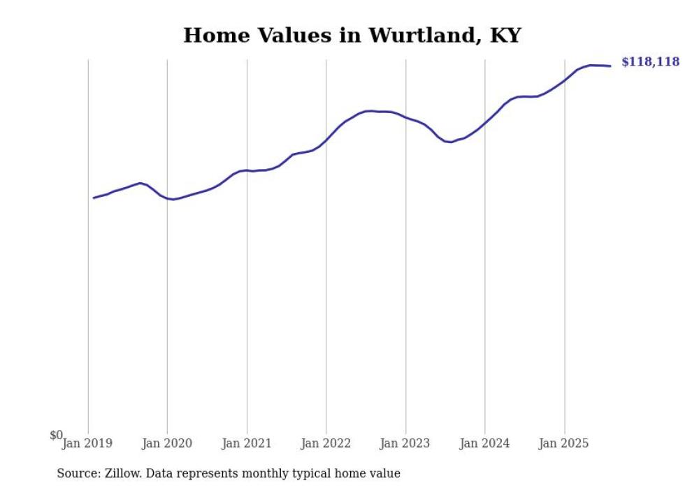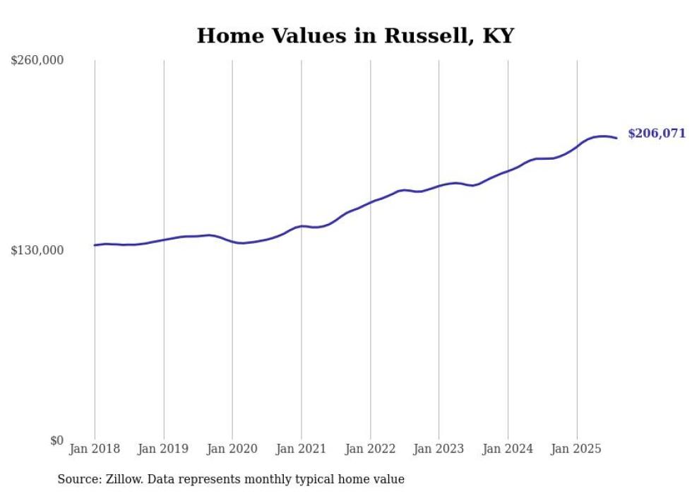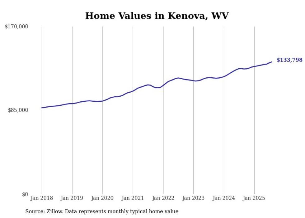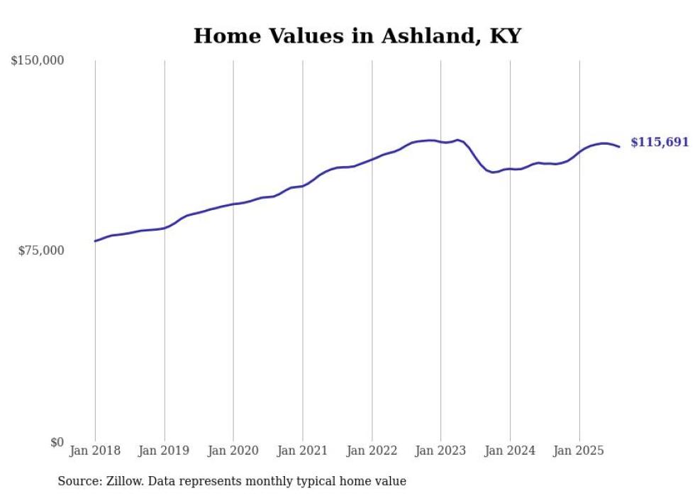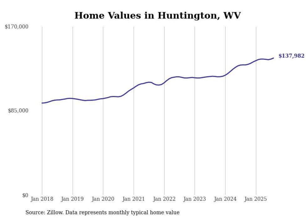 Stacker compiled a list of cities with the most expensive homes in the Huntington-Ashland, WV-KY-OH metro area using data from Zillow. Charts show the monthly typical home value since January 2018.