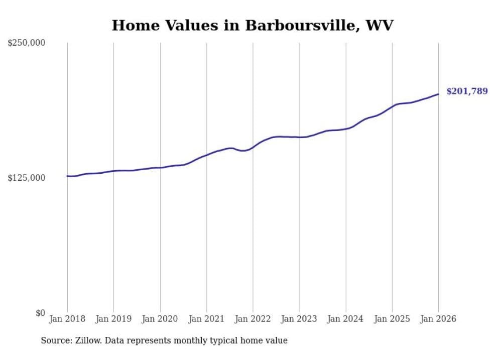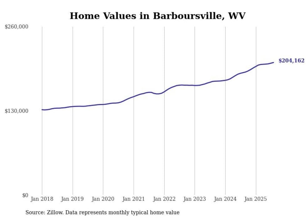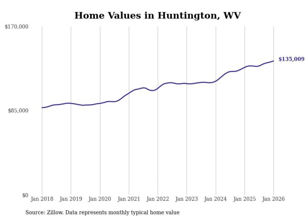 Stacker compiled a list of cities with the most expensive homes in the Huntington metro area using data from Zillow. Charts show the monthly typical home value since January 2018. Data was available for 46 cities and towns.
