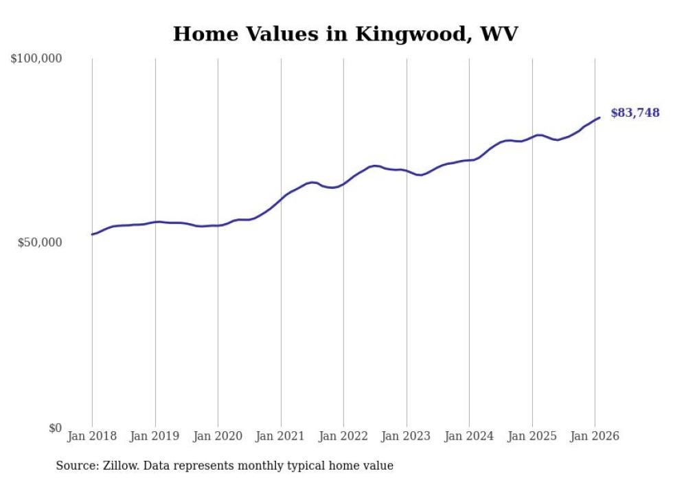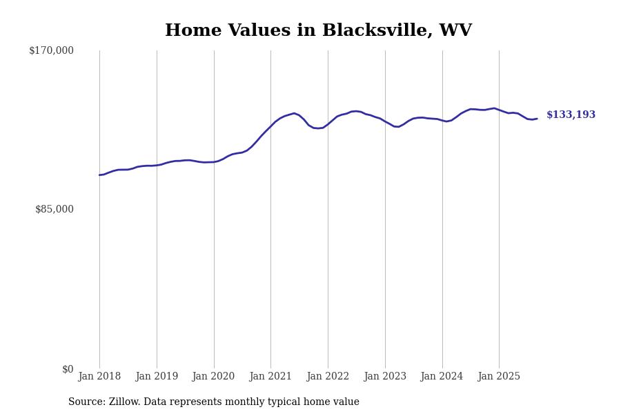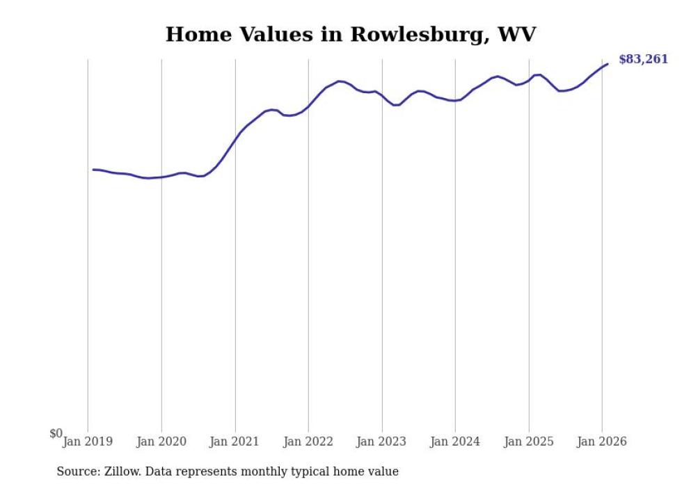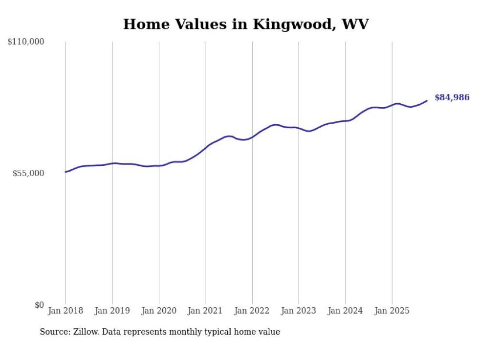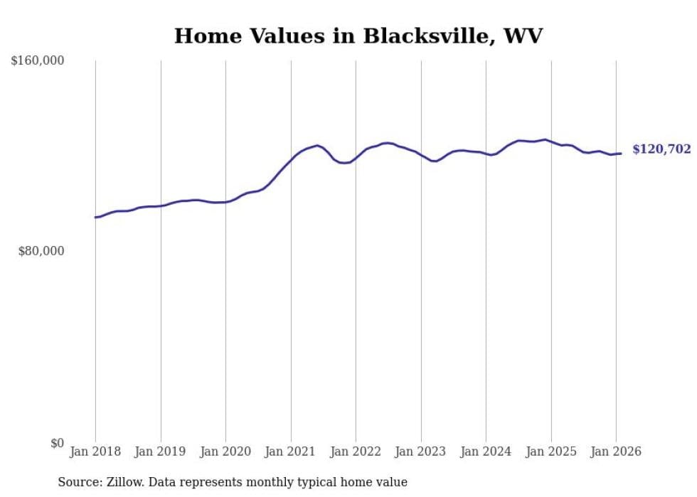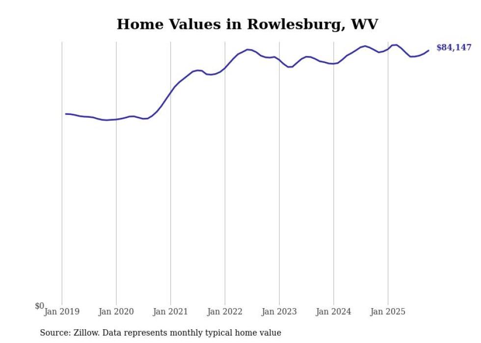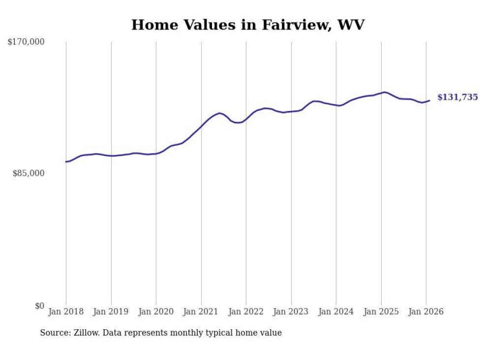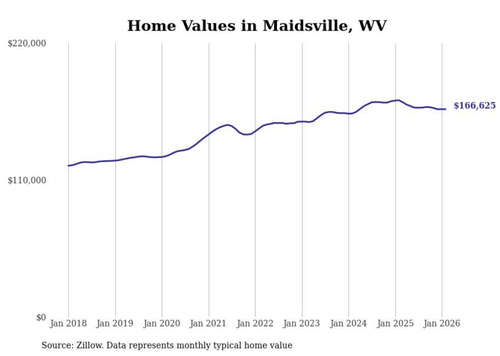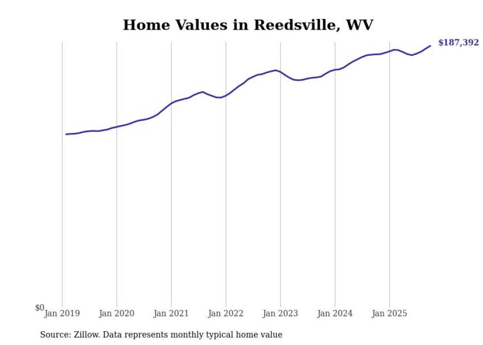 Stacker compiled a list of cities with the most expensive homes in the Morgantown metro area using data from Zillow. Charts show the monthly typical home value since January 2018. All 20 cities and towns with data available were included in the list.